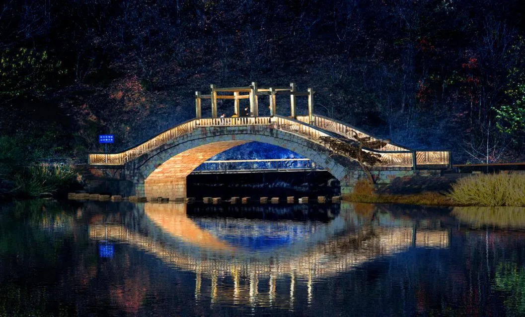 潺潺溪流搭配古朴石桥,