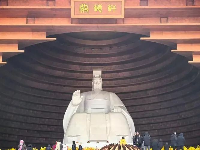 走进新郑黄帝故里祠,面朝庄严肃穆的黄帝像祈愿祈福。18米高的青铜像巍峨耸立,在阳光照耀下熠熠生辉。黄帝,本姓公孙,后改姬姓,是中国上古时期部落联盟的一位首领,建都于有熊,故亦称有熊氏。相传尧、舜、禹、伯益、商汤等都是黄帝的后裔,所以黄帝是中华民族共同的祖先。因此,历年黄帝故里举行拜祖大典吸引了无数海内外的华人,只为追寻共同的“根”。