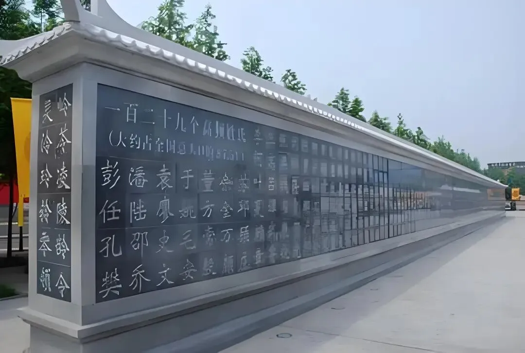 沿游览线路继续前行,便来到姓氏文化长廊,长廊展示众多姓氏图腾,它们承载着姓氏独特起源和发展脉络。当你漫步其中寻找自己的姓氏,仿佛开启一场奇妙的溯源之旅。