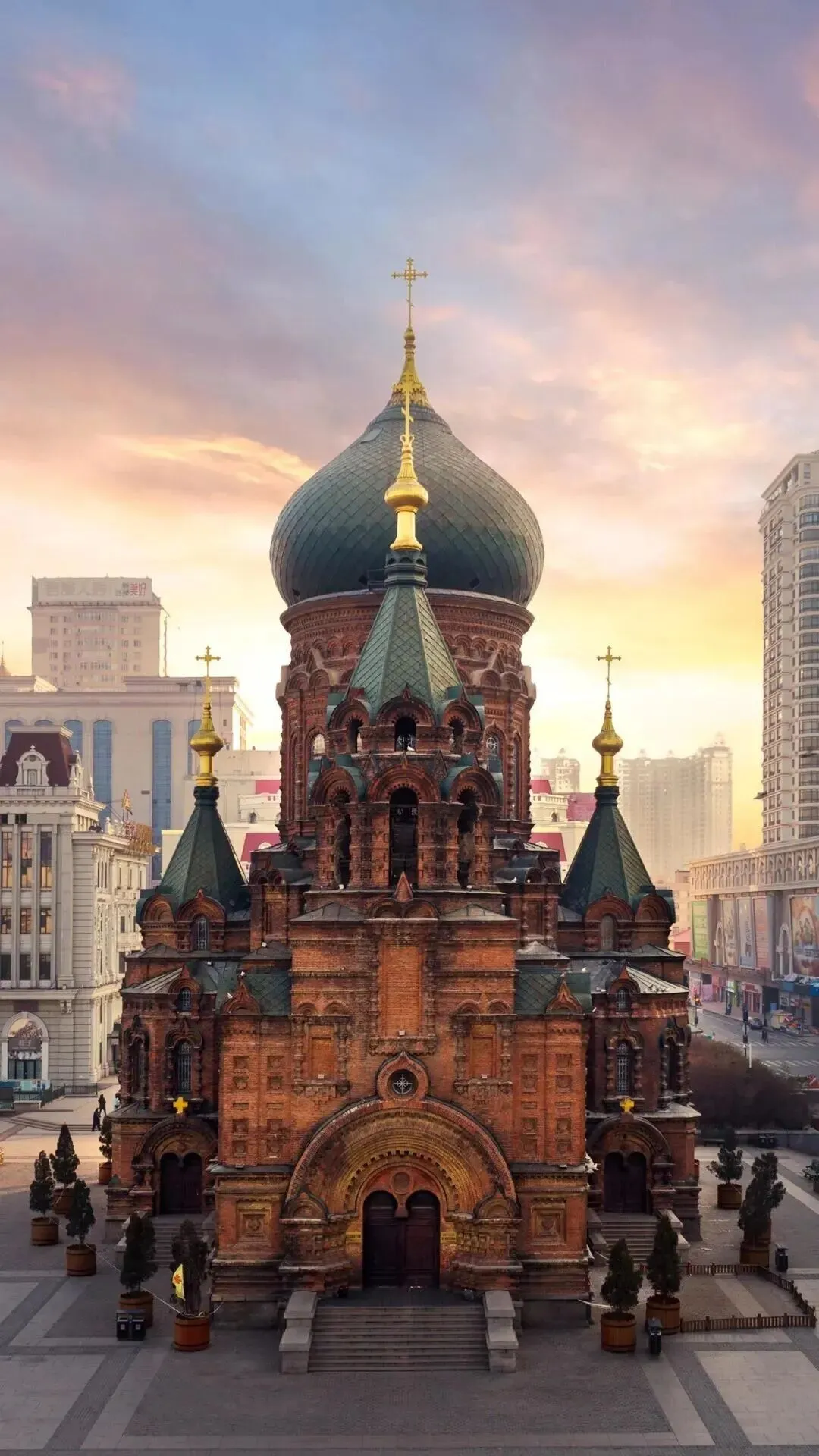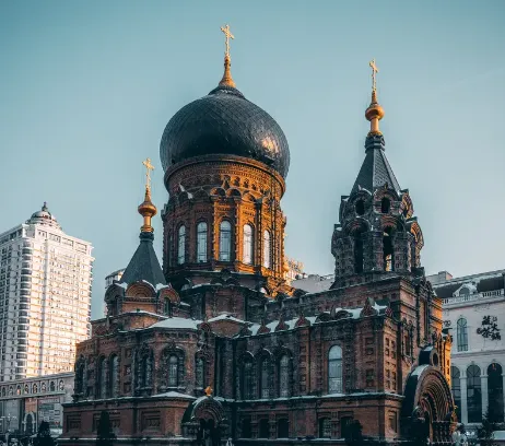 哈尔滨的标志性建筑!中国保存最完整的拜占庭式东正教教堂,63米高的绿色“洋葱头”穹顶辨识度拉满,彩色玻璃窗藏着圣经故事。外部是拍照打卡的绝佳背景,内部现在是“哈尔滨建筑艺术博物馆”。建议傍晚去拍,蓝调天空配暖黄灯光氛围感拉满,仰拍还能避开人群