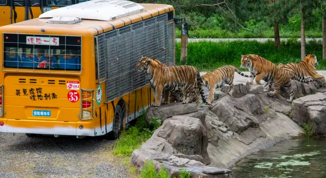 世界最大的东北虎人工繁育基地,玩法超特别——“人在车里,虎在野外”!乘坐特制观光车,近距离看数百只纯种东北虎的野性姿态,惊险又刺激。