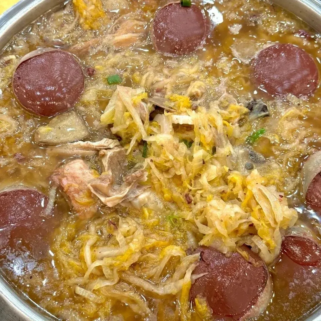 东北年味灵魂!酸菜、血肠、五花肉用大铁锅慢炖,酸香扑鼻,肥而不腻。源自满族祭祀,如今是冬季聚餐必备,暖身又下饭。