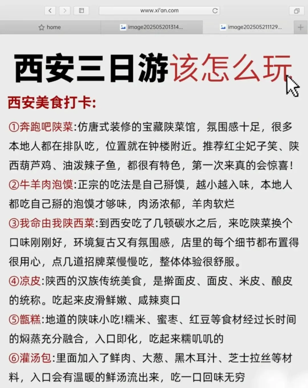 1️⃣每天睡到自然醒也能逛遍精华景点⏰ 2️⃣必吃陕菜清单,地道美味不踩雷🍜 3️⃣本地人私藏推荐,吃喝玩乐全安排📍 来西安不做攻略?照着走就完事儿!🎒