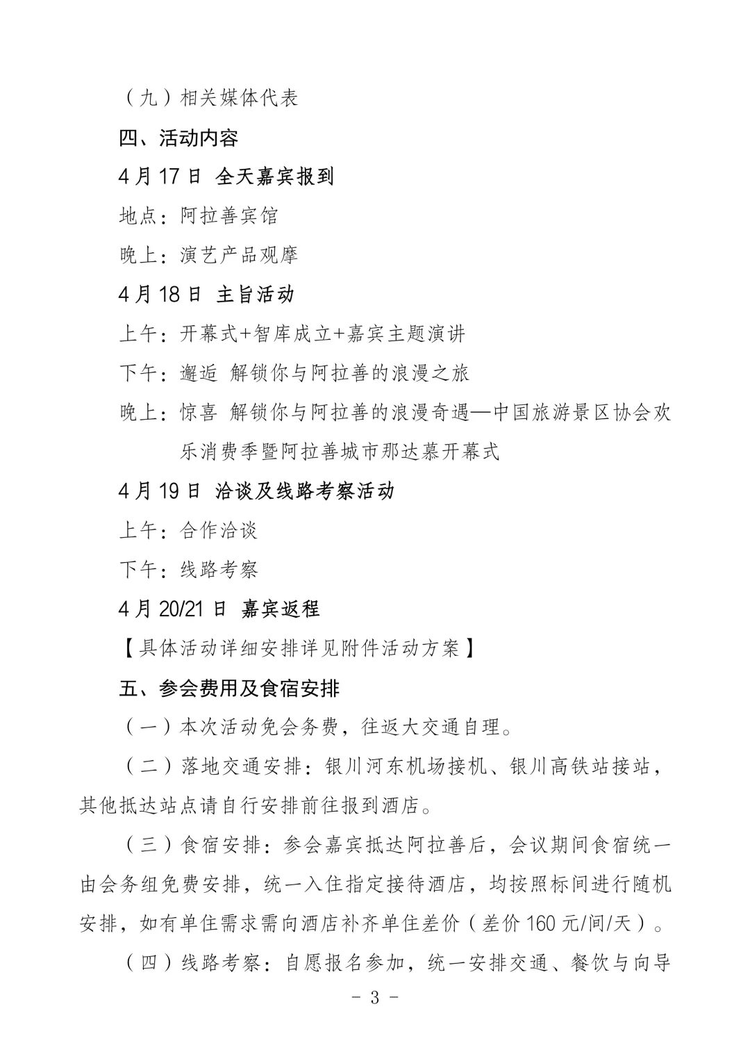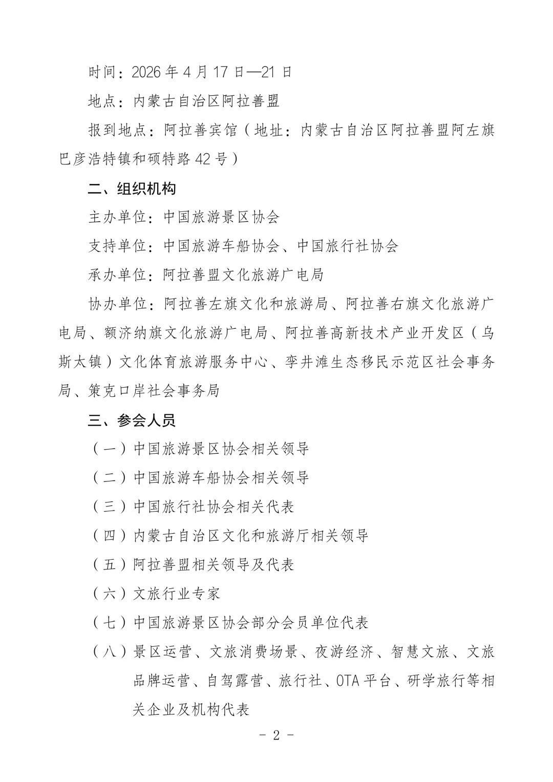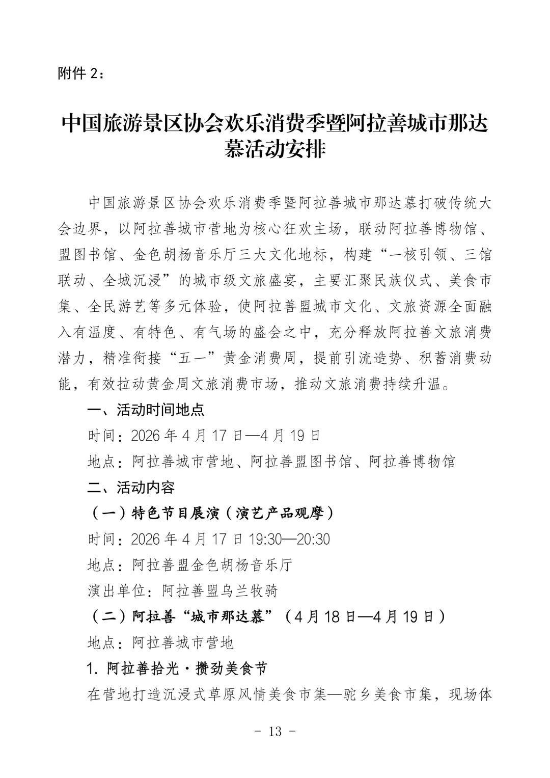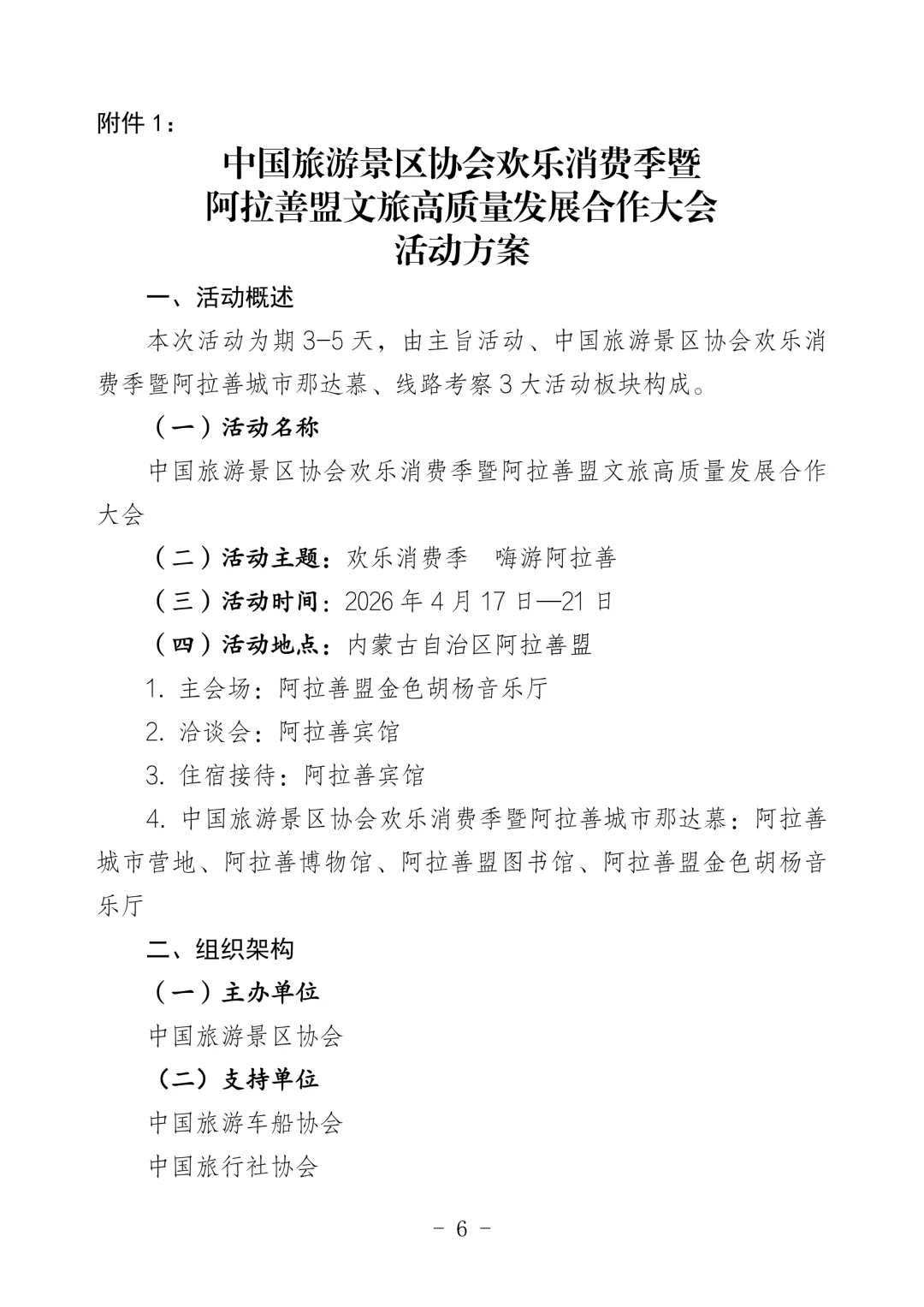 您现在的位置是:首页 > 国内旅游目的推荐 > 正文 国内旅游目的推荐 中国旅游景区协会关于举办欢乐消费季暨阿拉善盟文旅高质量发展合作大会的通知 admin2026年04月12日 22:16:35国内旅游目的推荐1 中国旅游景区协会关于举办欢乐消费季暨阿拉善盟文旅高质量发展合作大会的通知END关于举办中国旅游景区协会欢乐消费季暨阿拉善文旅高质量发展合作大会通知.pdf 转载请说明来源于"旅荐网",部分内容转载自网络,如有侵权请联系qlwl@foxmail.com删除 本文地址:https://www.15386.cn/post/154269.html 上一篇 毕业旅行没有攻略只冲这篇 下一篇 省钱攻略!4月免费开放的景区清单来了,包含多个5A级景点,说走就走不心疼!! 相关文章 省钱攻略!4月免费开放的景区清单来了,包含多个5A级景点,说走就走不心疼!! 毕业旅行没有攻略只冲这篇 芙蓉尖旅游攻略,云端道观 吉林旅游全攻略:从长白山巅到松花江畔的四季画卷 万峰林凌峰步道旅游攻略 打卡新疆旅行第一站新星市,最美风景全攻略来啦!快收藏(第二期) 昆明旅游攻略保姆级避坑 大家帮我看看去云南的旅游攻略 大理旅游攻略|3天2晚纯玩小团人均1000+ 五一去长白山保姆级旅游攻略 发表评论 取消回复 评论列表 这篇文章还没有收到评论,赶紧来抢沙发吧~
