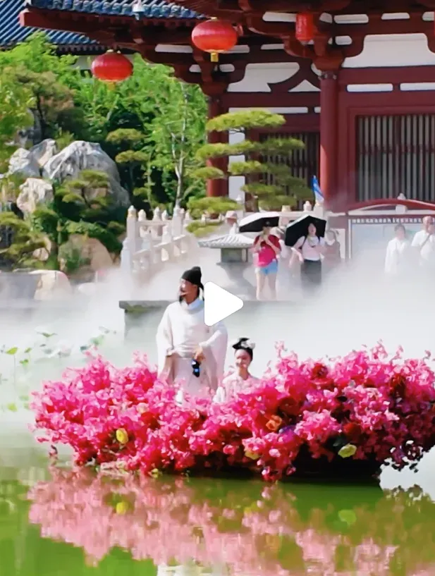 华清宫的4月,牡丹正艳。这座承载着千年爱情故事的皇家园林,在春日里格外动人。漫步在九龙湖畔,看亭台楼阁倒映水中,听《长恨歌》的故事在耳边回响。骊山苍翠,温泉氤氲,历史的厚重与春天的轻盈在这里完美交融。
