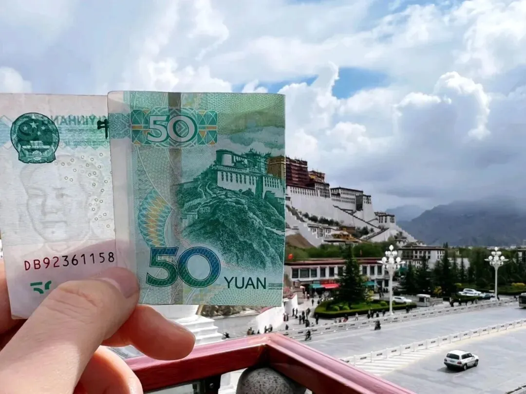 50元人民币背面的布达拉宫,是雪域高原的信仰圣殿,红白相间的宫殿屹立红山,庄严又神圣,是无数人此生必去的地方。