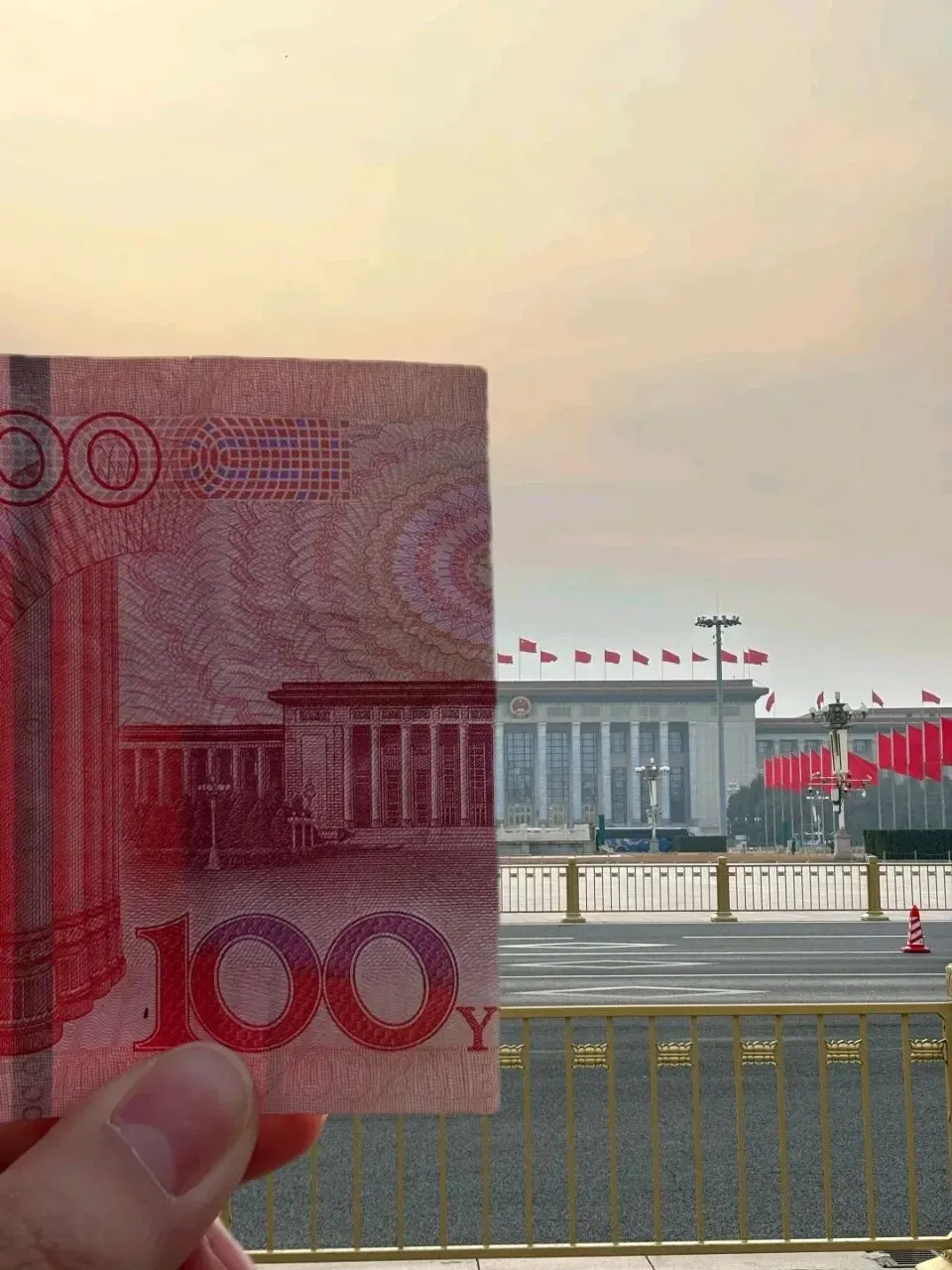 1. 手持100元纸币,在天安门广场正对大会堂拍摄,彰显大国情怀