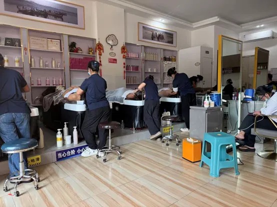 芒市的缅式洗头可谓大名鼎鼎,也是我此行选择飞到芒市的最重要理由。出租车上和师傅闲聊,说技师大多来自缅甸,她们可以申请一个什么证,就可以从缅甸来芒市务工。但她们的证件只允许在芒市活动,不能去其他城市。店里包吃包住,收入模式是拿工资或拿提成,大多数技师选择拿提成,因为有时候游客很多,她们多做点就可以赚多一点了。