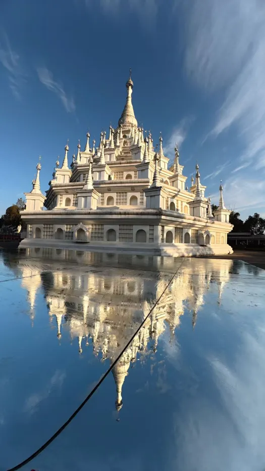 勐焕银塔不是一座有千年历史的古塔,它2019年才竣工开放,但这丝毫不影响它的魅力。它用纯粹的白色、精巧的设计、绝佳的视野,成了芒市最上镜的地标。银塔塔高66米,直径46米,是一座实心塔,无法入内。塔身由80座小塔簇拥环绕,形成“众星捧月”之势。站在塔下,听风铃在耳边轻响,看夕阳把塔身染成金色,你会明白,有时候,年轻的风景,也有它独特的诗意。