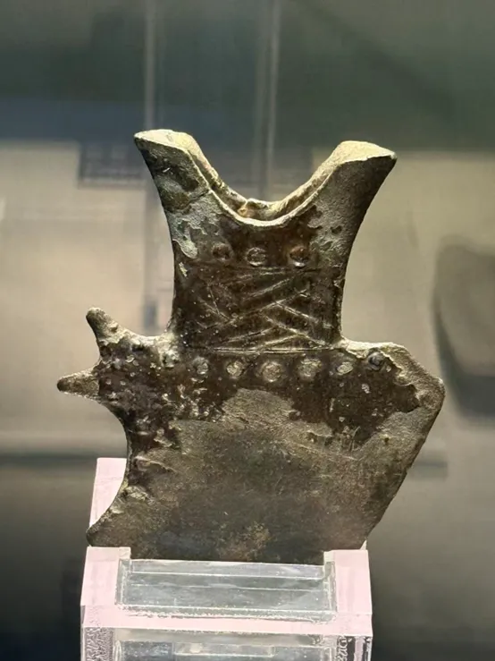 博物馆本身就很值得看,外观像一个不规则的赭红色“宝盒”,外墙的肌理是亚热带榕树根系的抽象表现,寓意“植根德宏,面向四方”。馆标也很有来头:它是国家一级文物“龙江型不对称铜钺”(东汉时期的青铜器)和“德”字的结合体。