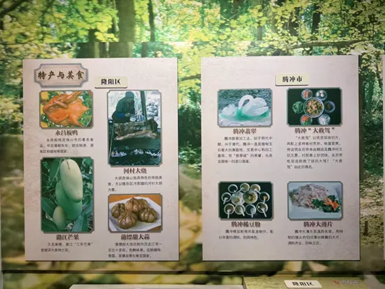 整座建筑仿仿本地出土的战国时期万家坝型铜鼓而建。战国时期的青铜鼓,全世界最古老、最原始的铜鼓,就在保山出土。2005年在腾冲发现的5000-8000年前的大熊猫骨骼,证明这里曾是熊猫的家园。
