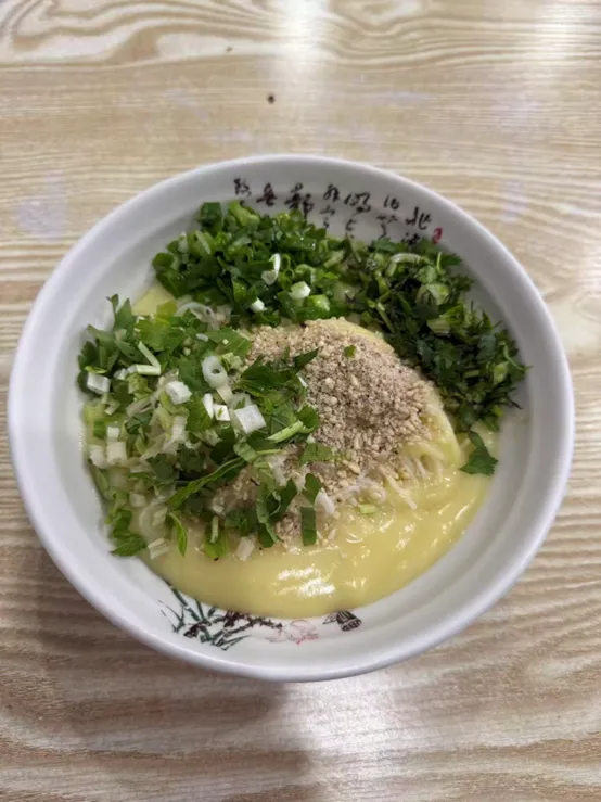稀豆粉:豌豆磨浆熬成浓稠糊状,口感细腻顺滑,豆香浓郁。搭配饵丝、油条或烧饵块食用。2018年登上《舌尖上的中国》。