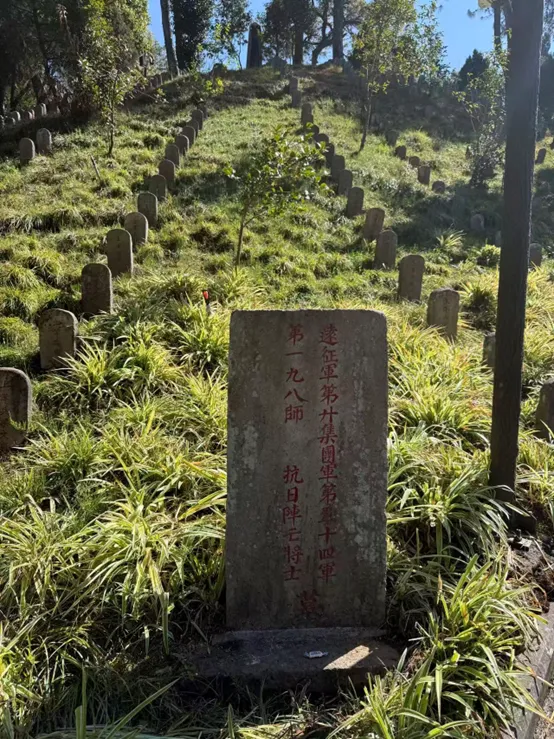 紧邻纪念馆的国殇墓园(国4),纪念二战时在光复腾冲及入缅作战中殉国的中国远征军将士的墓园,始建于1945年7月7日,是滇西抗战中最具代表性、格局最完整的烈士陵园。墓园中轴对称、台阶递进,主体建筑为重檐歇山顶忠烈祠,祠后小团坡顶立有高10米的纪念塔,坡上烈士墓碑3346块。“文革”中墓园遭到严重破坏,大量墓碑墓穴被毁,1988年复修开放,烈士英名得以重昭天下。