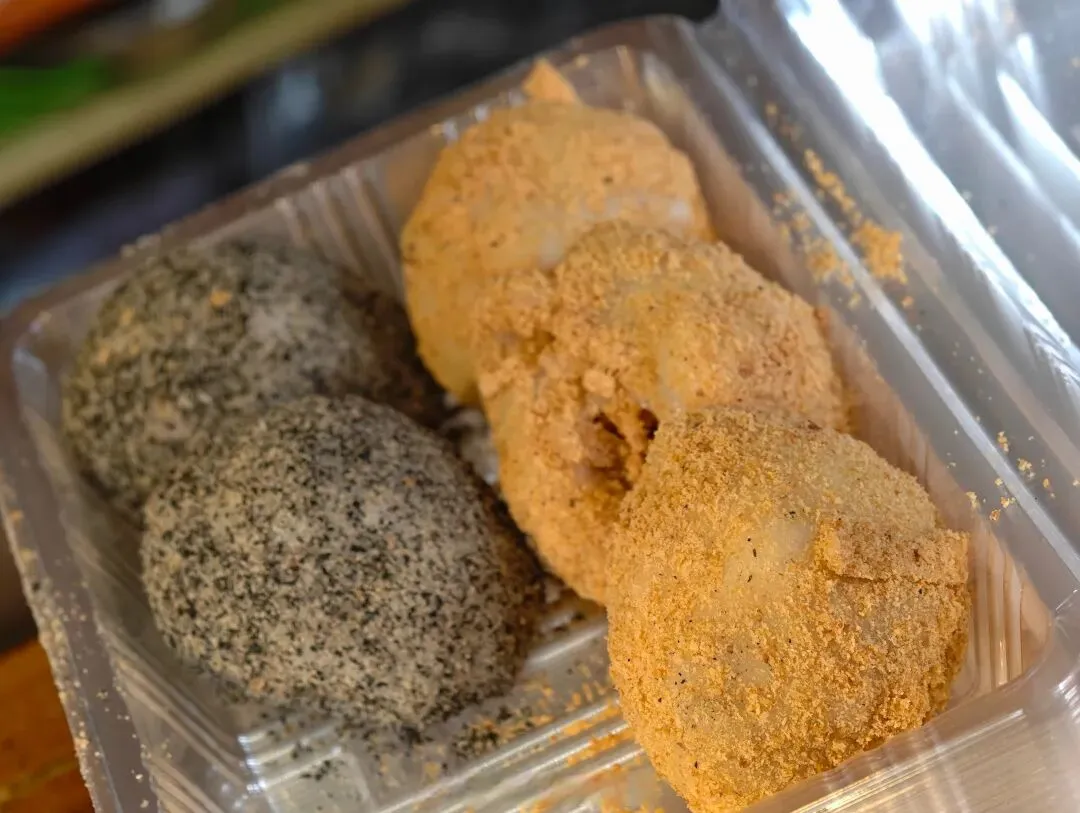 · 麻糍顺:Q弹有嚼劲的麻糍,外面裹着香喷喷的花生粉和黑芝麻粉