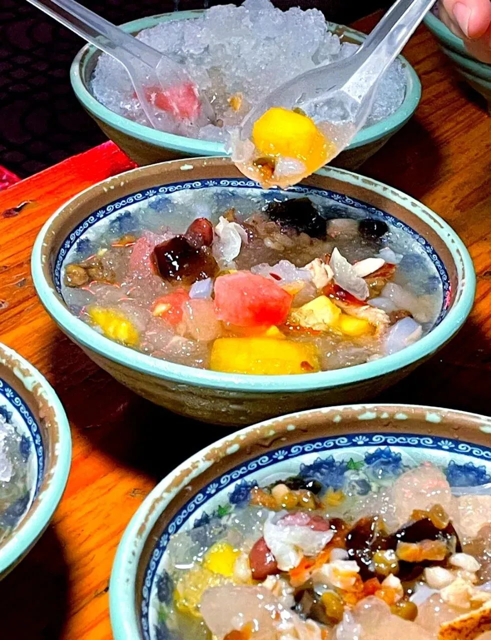 · 四果汤:漳州的石花膏清爽滑嫩,在炎热的午后来一碗冰镇四果汤,清甜爽口