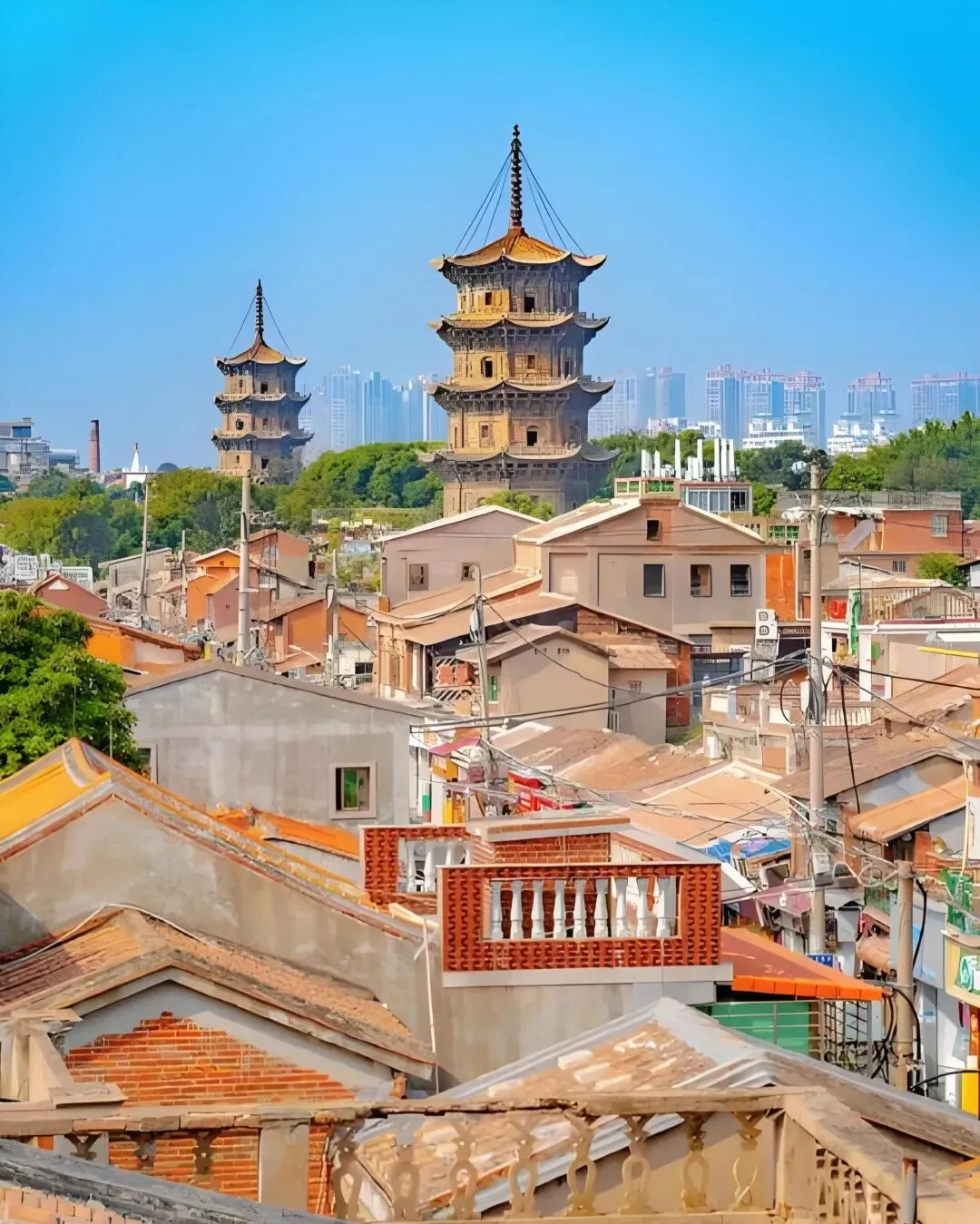 ✅开元寺:泉州最具代表性的寺庙,也是世遗点之一。必拍红墙双塔和飞天乐伎,红瓦古厝搭配蓝天白云,随手都是大片。寺内始建于唐代的桑莲法界和东西双塔(镇国塔、仁寿塔),是泉州的绝对地标。早上抵达,避开旅行团,可以静静感受这座千年古刹的禅意。