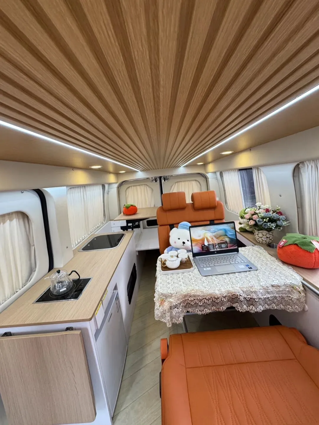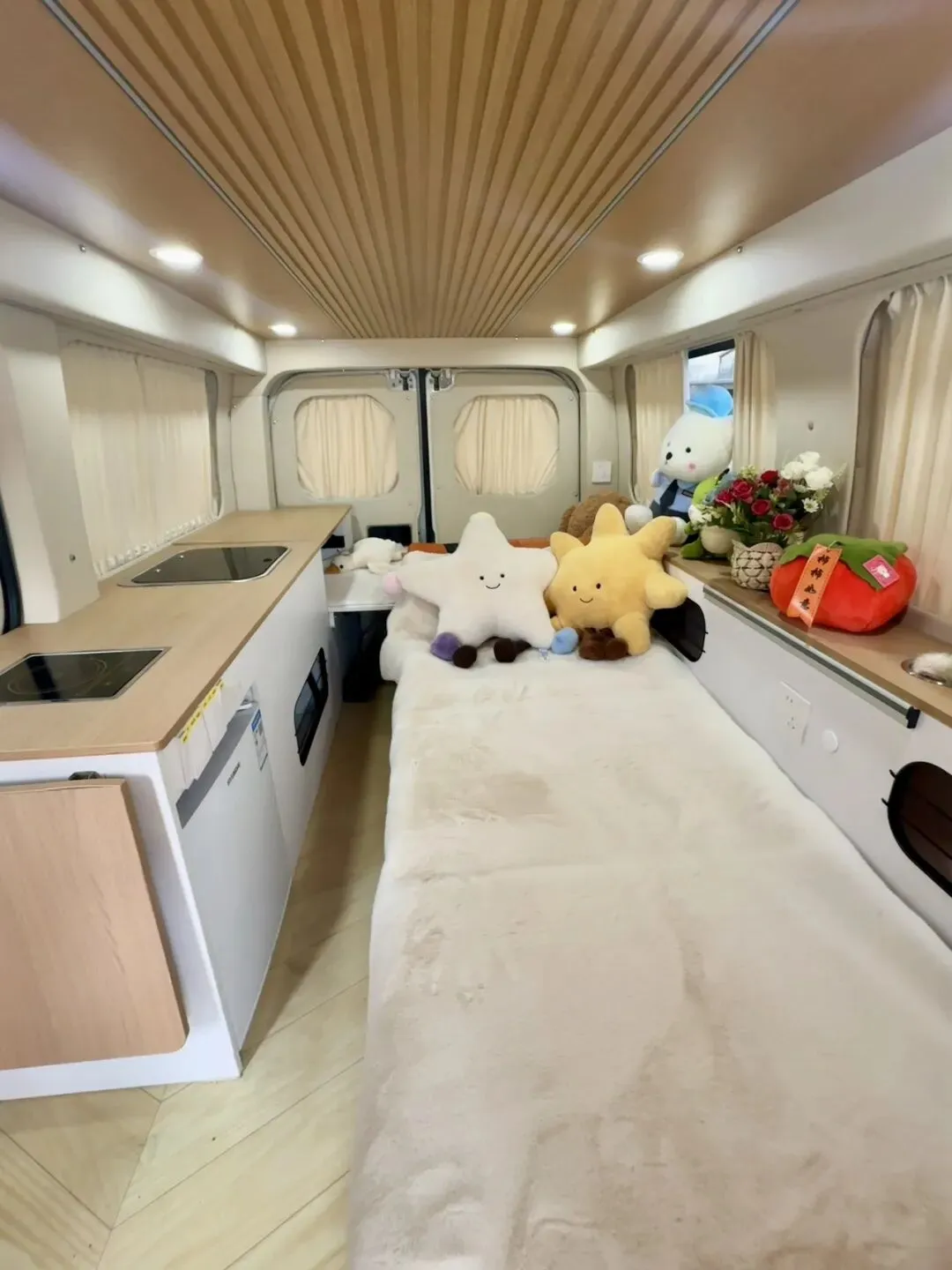 它完美融合了 “房”的舒适 与 “车”的灵活,车内配备卧室、厨房、、冰箱、空调等全套居家设施,让你在旅途中随时享受家的温暖与便利。