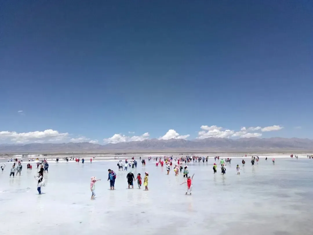 贴士:穿景区鞋套(防盐腐蚀),别光脚下湖。