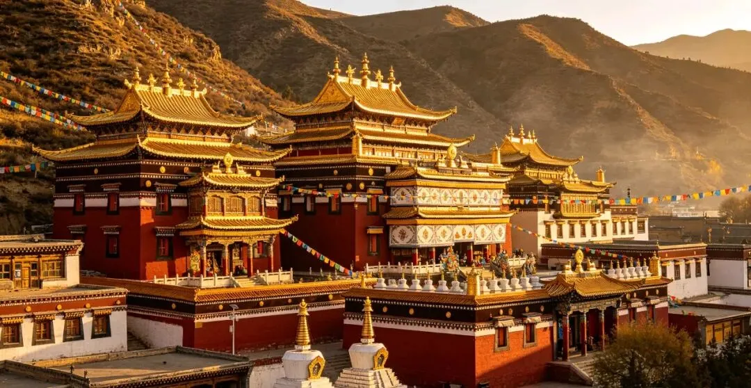 看点:酥油花、壁画、堆绣“三绝”,藏式建筑群庄严震撼,4-5月游客少,可静心感受宗教文化。