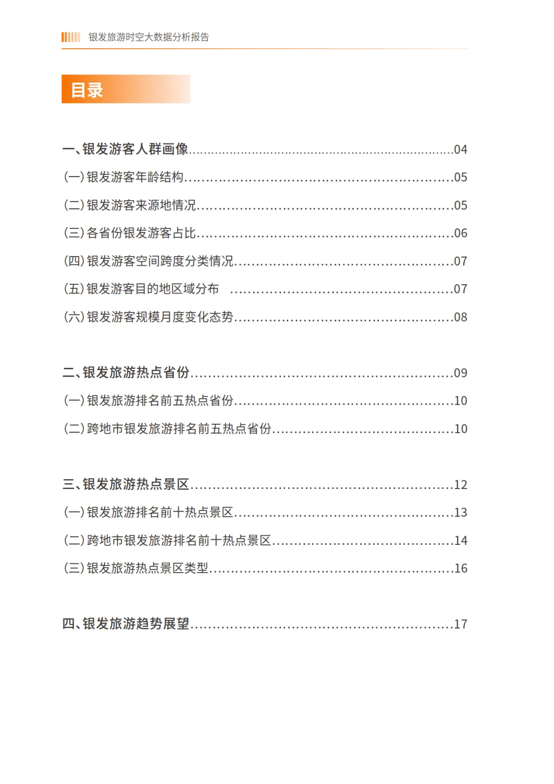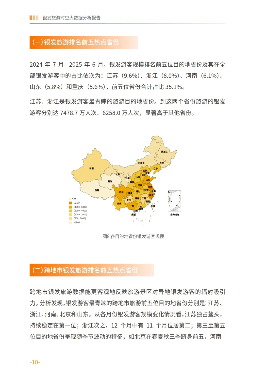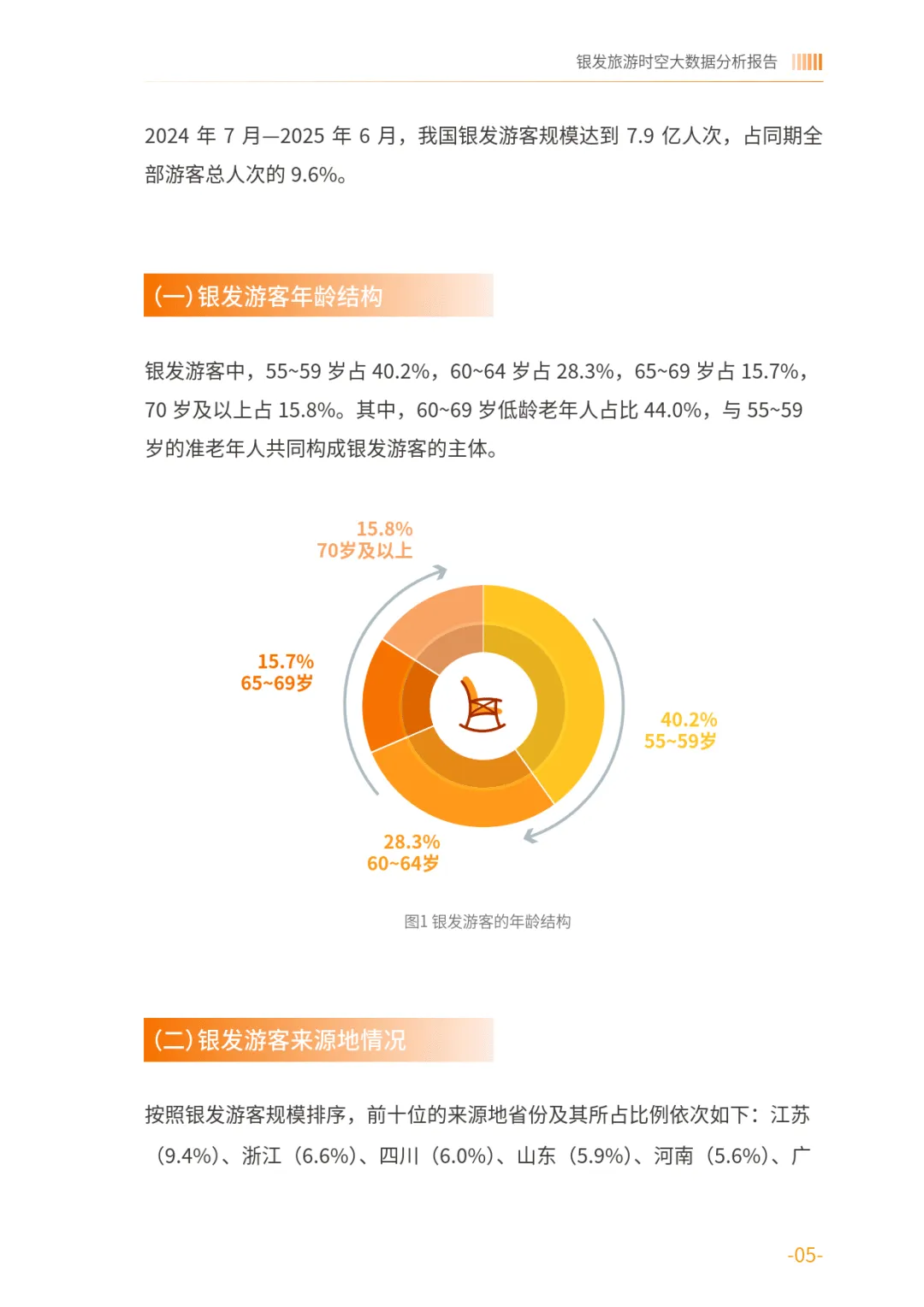 银发旅游时空大数据分析报告——基于中国联通对全国4686个景区的动态监测-中国老龄协会报告由中国老龄协会发布,基于中国联通 2024 年 7 月至 2025 年 6 月对全国 4686 个景区的动态监测数据,聚焦 55 岁及以上银发游客旅游行为展开分析,全面呈现银发旅游人群特征、热点分布与发展趋势,为银发旅游市场发展提供数据支撑。