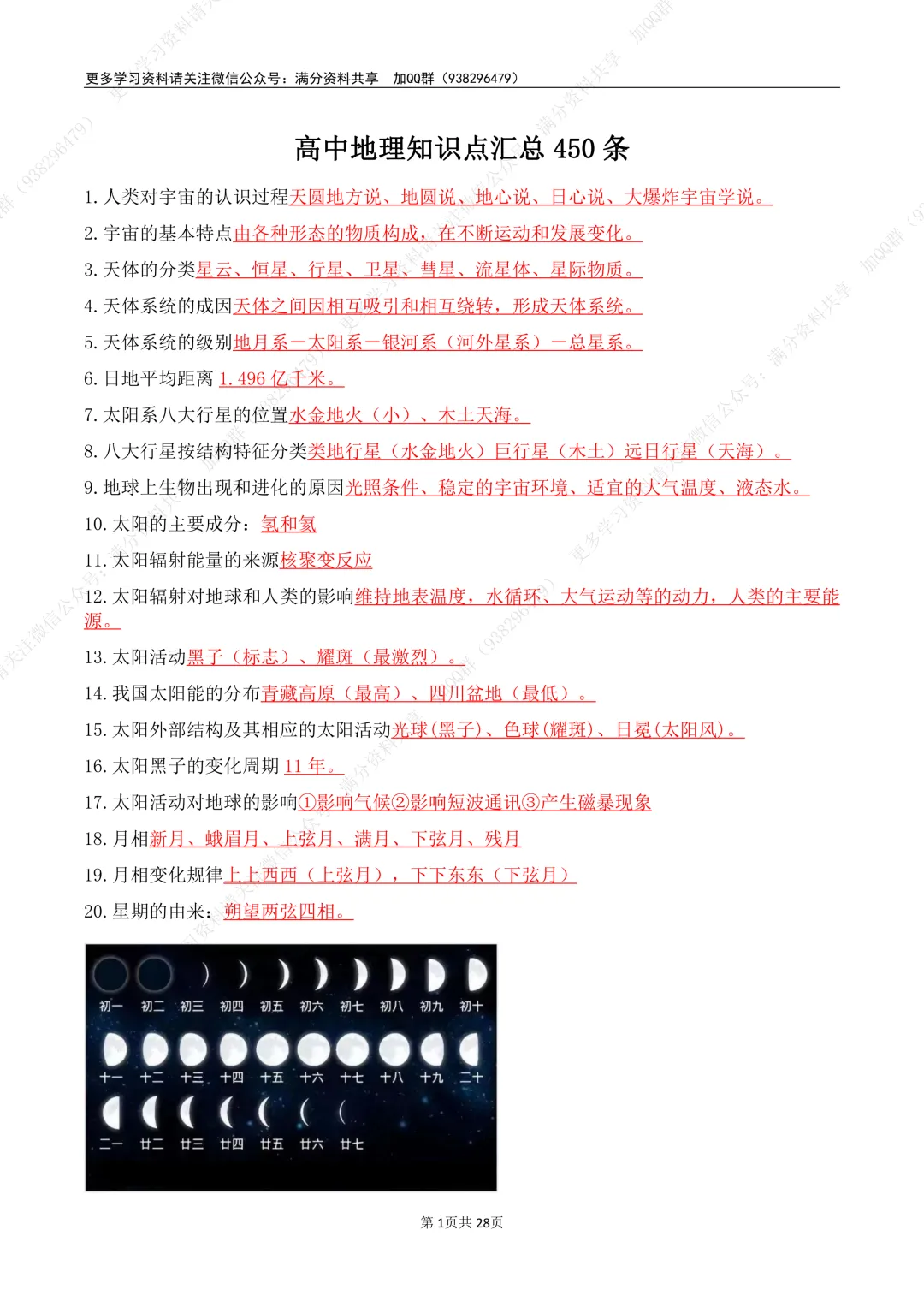 【高中地理】高中地理知识点汇总450条(pdf分享)