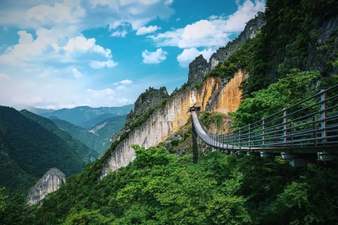赛道起点就设在“地球最古老伤痕”——武陵山大裂谷游客中心!2.5亿年喀斯特地貌奇观,10公里原生态峡谷藏着无数震撼:穿青天峡地缝,看绝壁夹峙、天光一线,《中国国家地理》认证最美拍摄点;走天门洞索桥,180米高空悬桥,脚下万丈深渊超刺激;乘武陵泰斗索道,亚洲最陡往复式索道,42.6度坡度直穿云海,俯瞰 “铜墙铁壁” 地质奇观。
