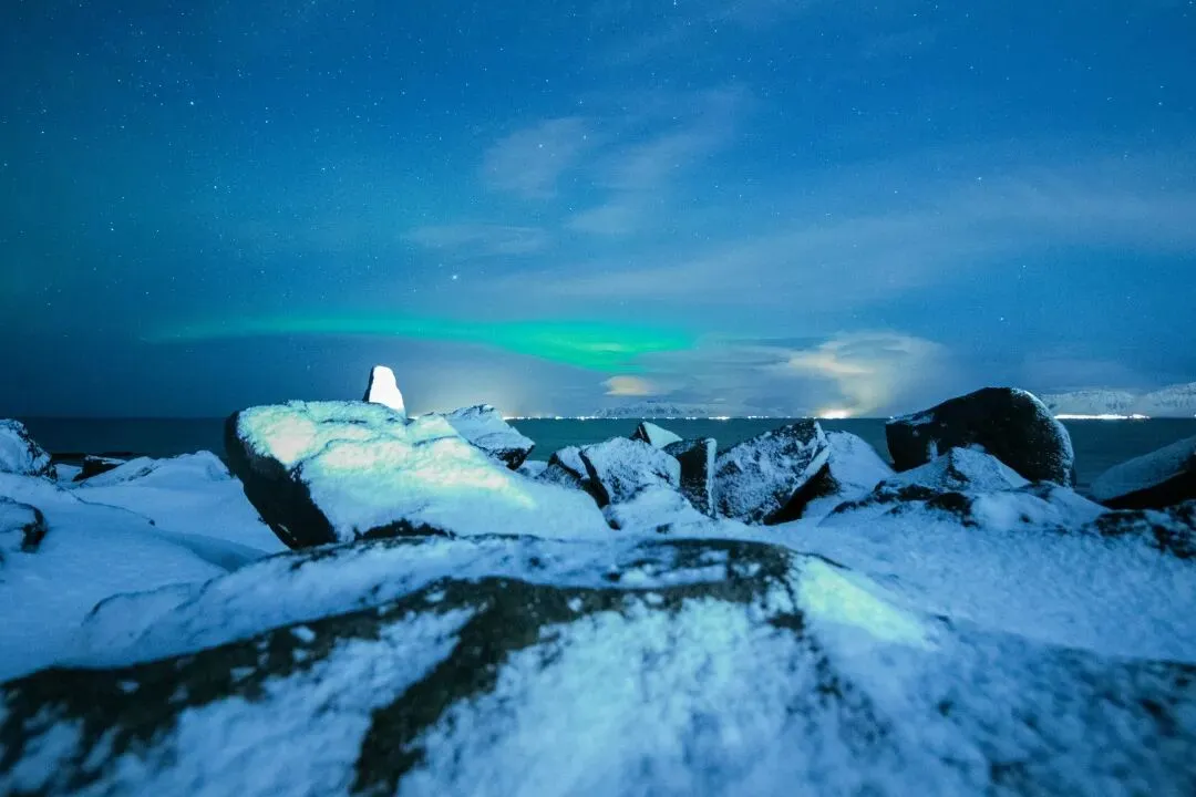 远离城市灯光的郊野,极光像绿色的绸缎在头顶无声铺展。冰岛几乎没有光污染,只要天气晴朗、极光指数足够,甚至不需要刻意去景点,抬头就可能遇见。