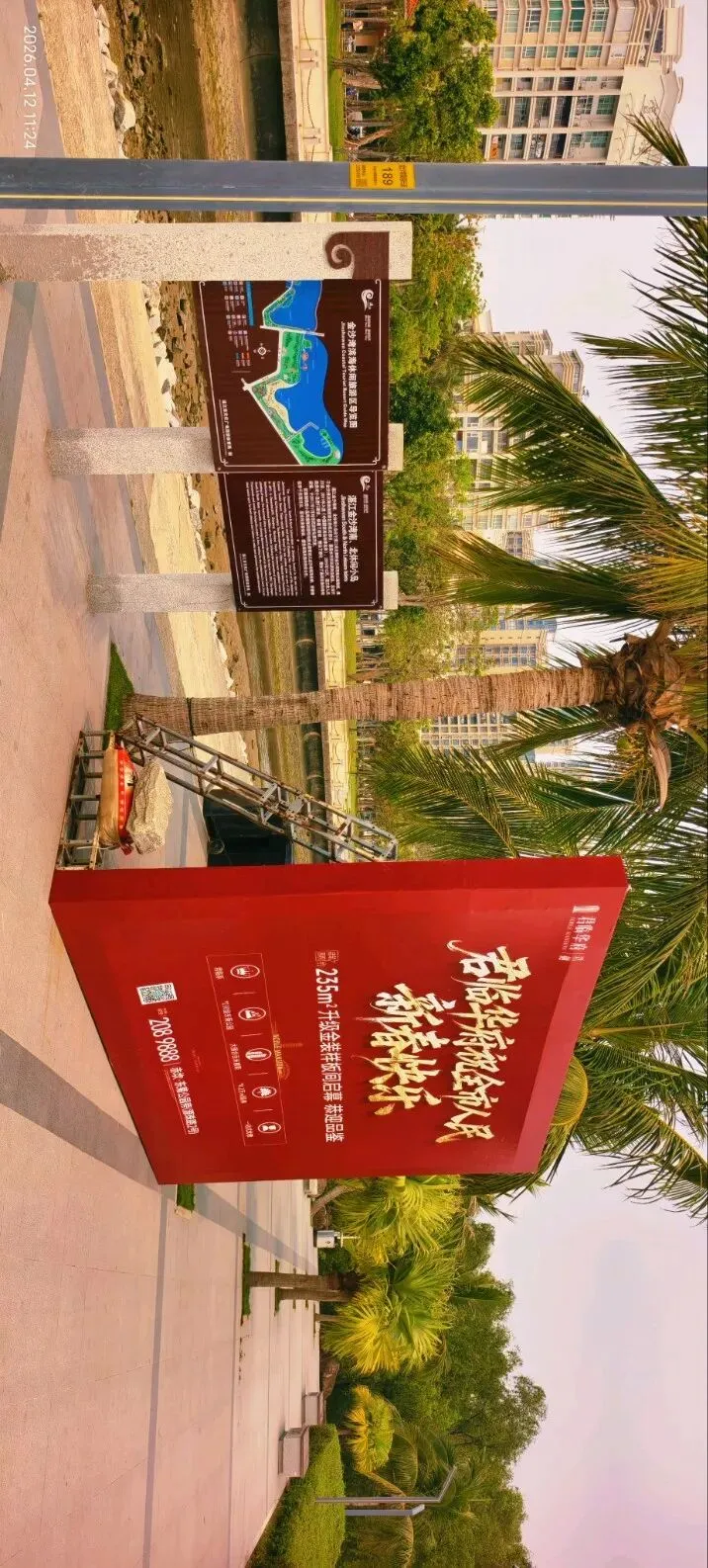一个楼盘广告,做到了金沙湾景区的边沿,倒是显得有点特别。这个世界常常就是这样子,哪里有人哪里就有生意。这生意至于是什么,就很难一言而尽了。看到广告的名字,是君临华府的字样。君临系的楼盘在湛江的房地产是数一数二的知名楼盘了,从君临海岸,君临世纪到君临华府,市场口碑应该是不错的。