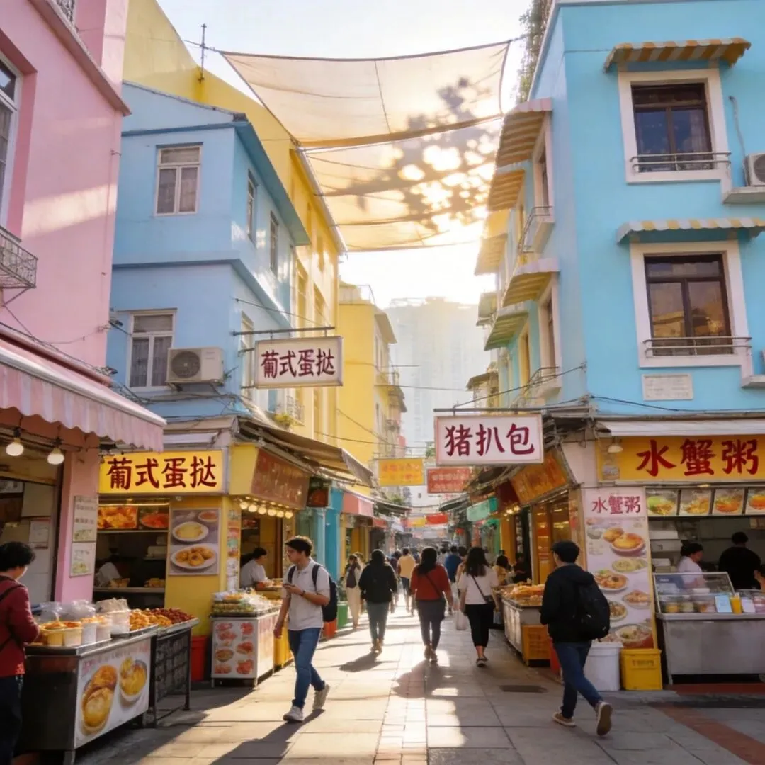 坐发财车或公交到氹仔官也街,这里被称为澳门美食天花板!必吃安德鲁饼店葡挞(外酥里嫩,内馅滑嫩),大利来记猪扒包(炭烤猪扒外焦内嫩),莫义记猫山王榴莲雪糕(果肉浓郁),水蟹粥、木糠布丁也不能错过。吃完美食步行15分钟到威尼斯人度假村,室内人造天空和大运河让人仿佛置身意大利,可以坐贡多拉船(约145MOP)。旁边就是巴黎人酒店,1/2比例复刻的埃菲尔铁塔白天拍欧式全景,晚上亮灯后浪漫到极致。伦敦人大本钟也超适合拍照!