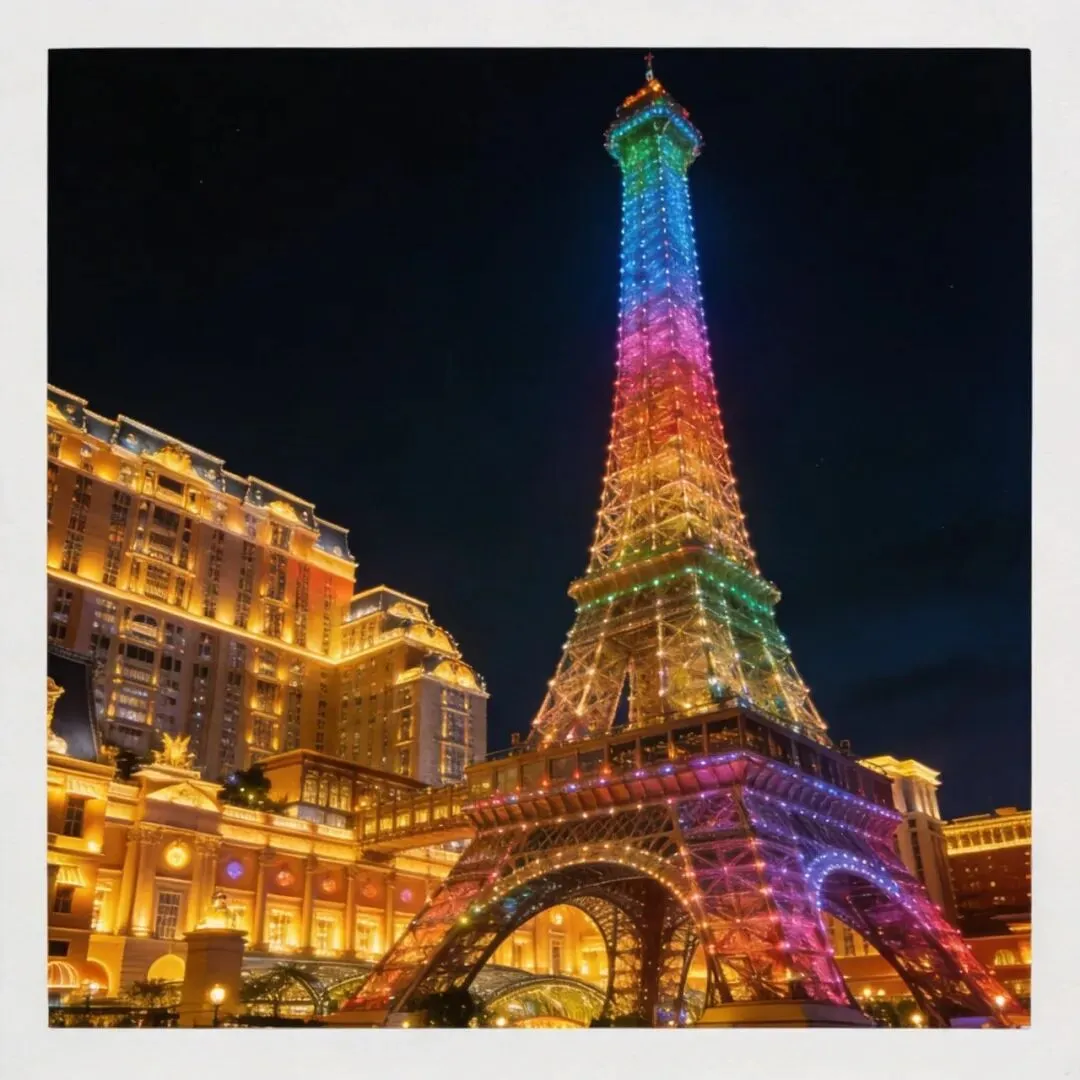 2️⃣ 澳门精华全覆盖:一天时间打卡澳门必去景点!大三巴牌坊世界遗产、威尼斯人度假村、巴黎人铁塔、永利皇宫灯光秀、官也街美食天堂,历史人文+现代奢华一网打尽!