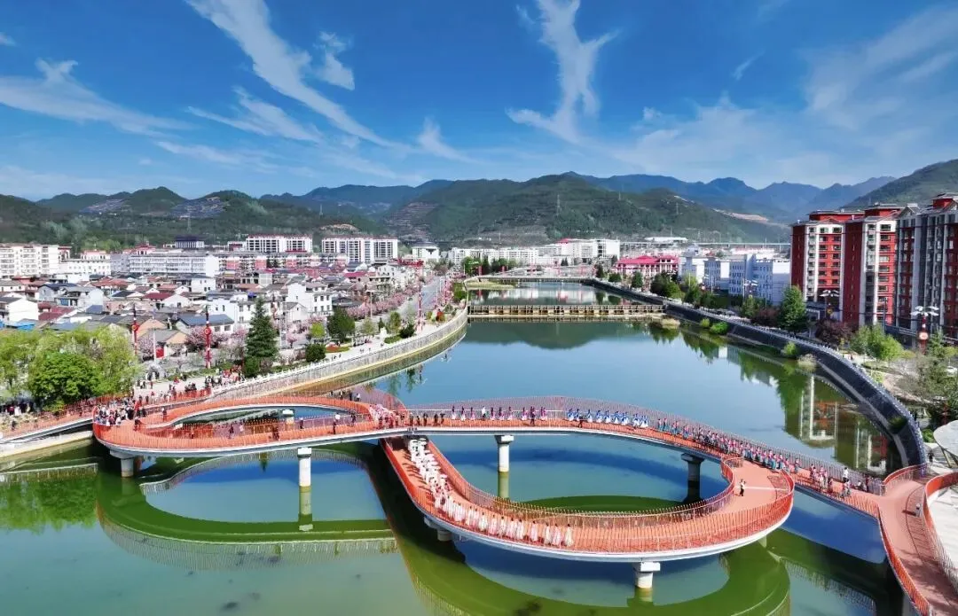 登东山红色文化广场,俯瞰城关镇全景,漫步广香路、广香河畔,邂逅春日限定樱花海,粉白花枝与河畔风光、民居建筑相映成趣,打卡福桥、寿桥,随手拍出氛围感大片,尽享慢城春日诗意。