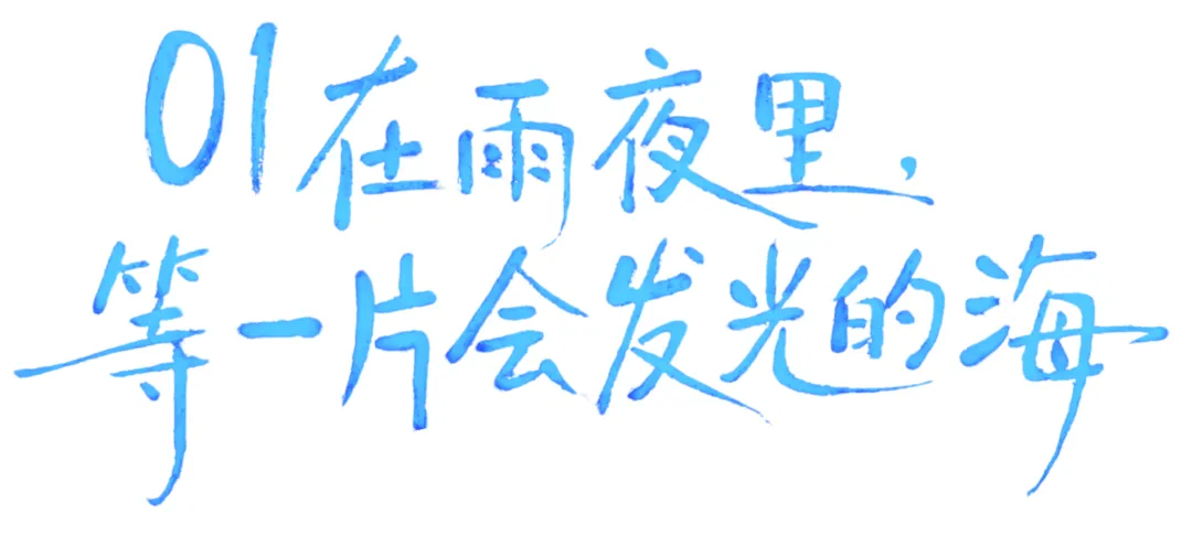 不是只有晴夜的星空下才能邂逅幽幽荧光,雨夜的荧光海是同样梦幻的蓝。
