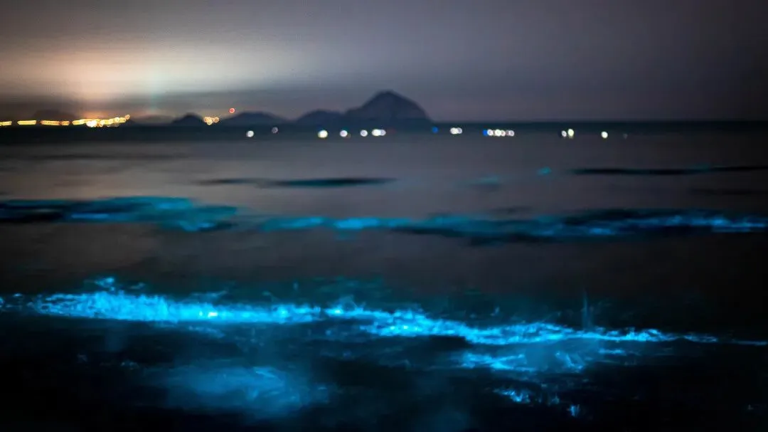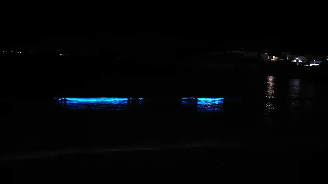 🔸能看到幽蓝的光随着海浪被推上岸。