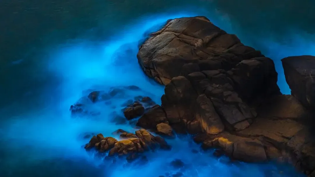蓝眼泪是海洋写给夜晚的诗。微小的浮游生物受到扰动,通过生物发光反应释放出幽蓝的冷光——这是它们的防御机制,却成了我们眼中的浪漫。