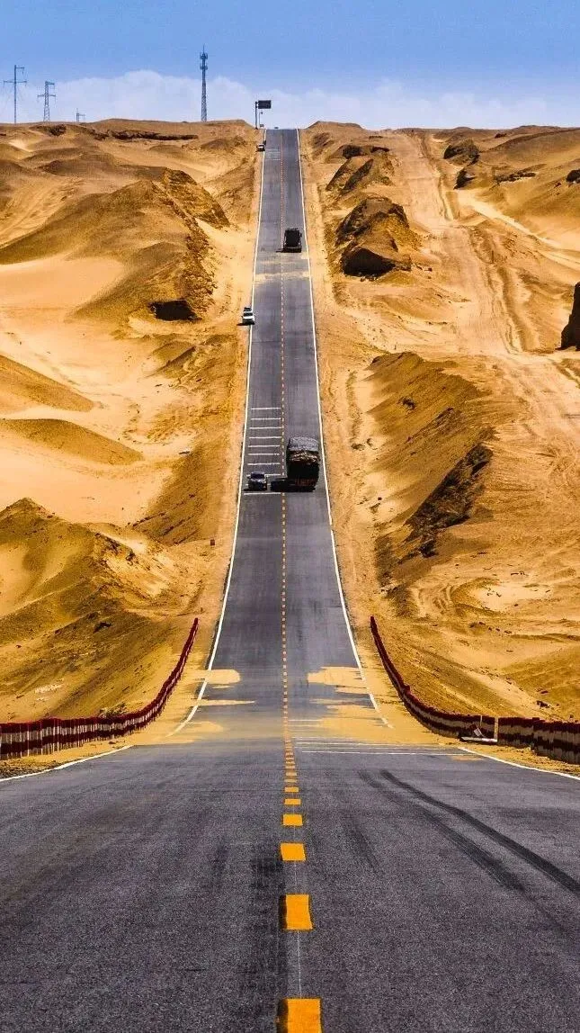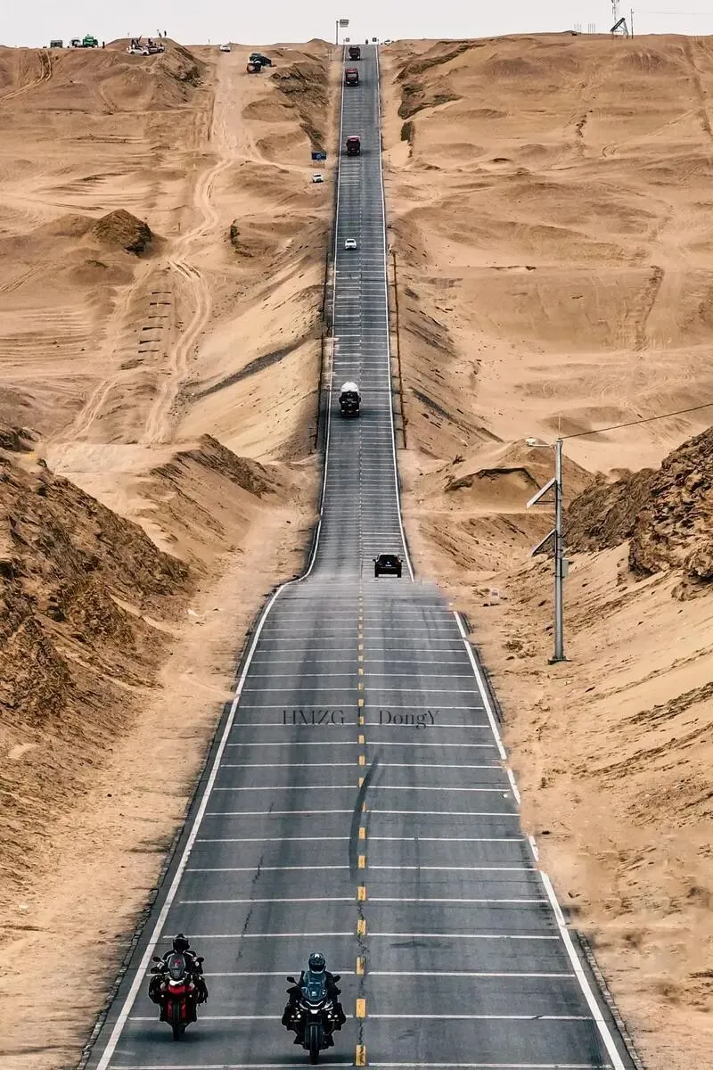 这条笔直的公路随起伏的地势而落成