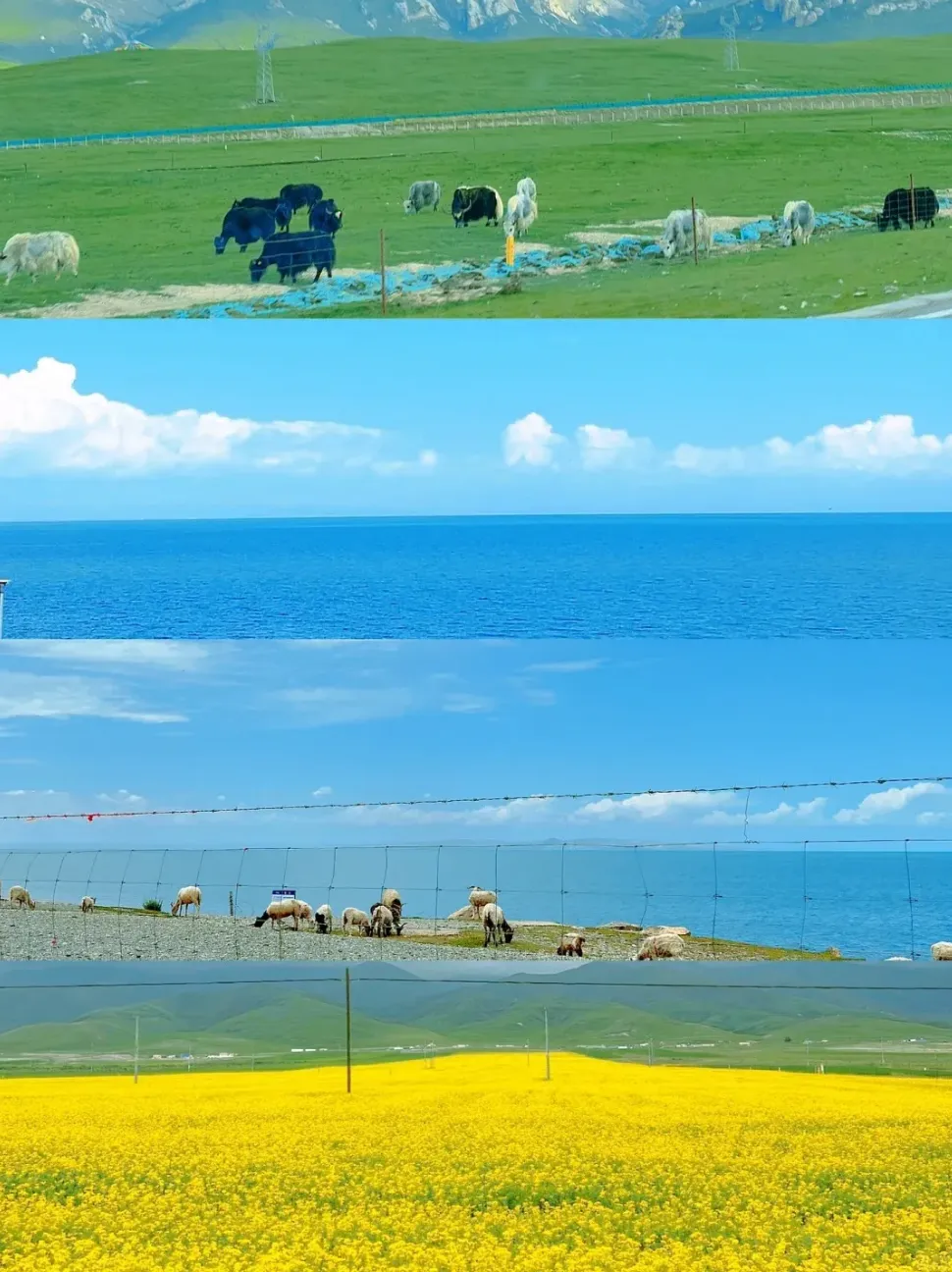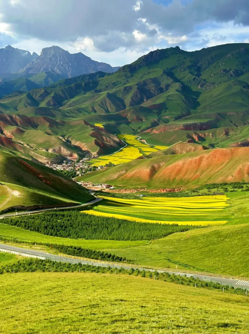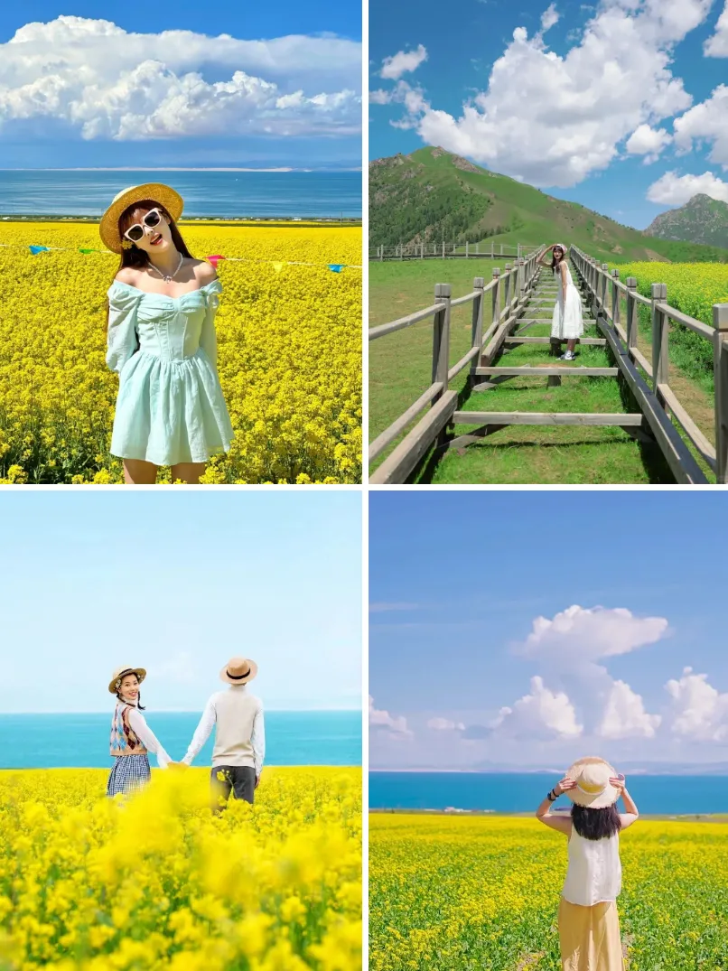 大西北最佳旅行时间是每年的6-9月,这个时候,雪山融化,盐湖湖水更清澈,草原绿了,成片成片的油菜花也开了。