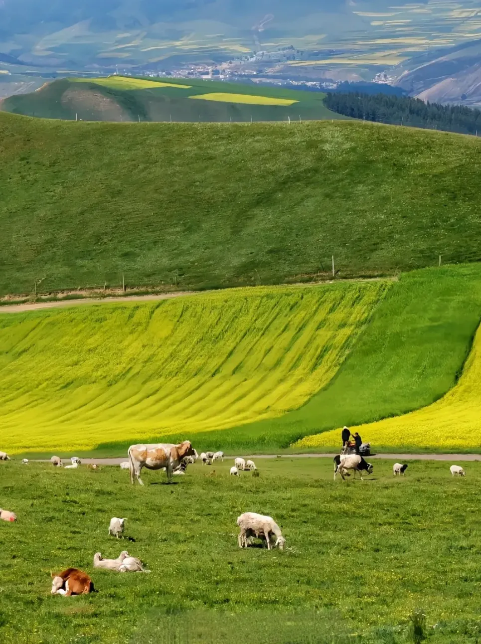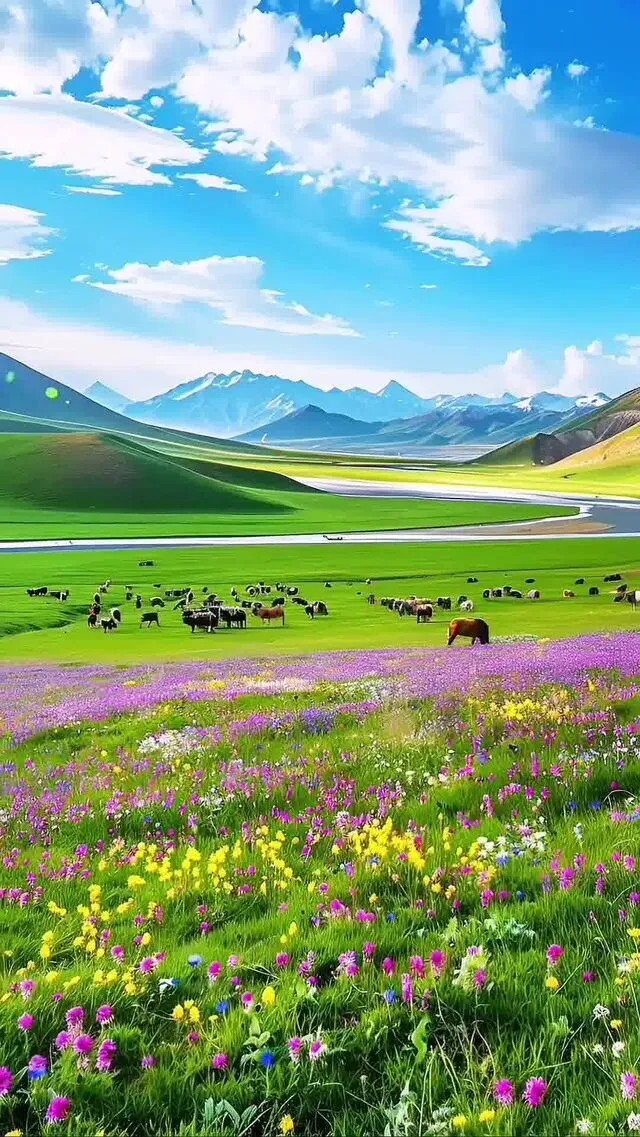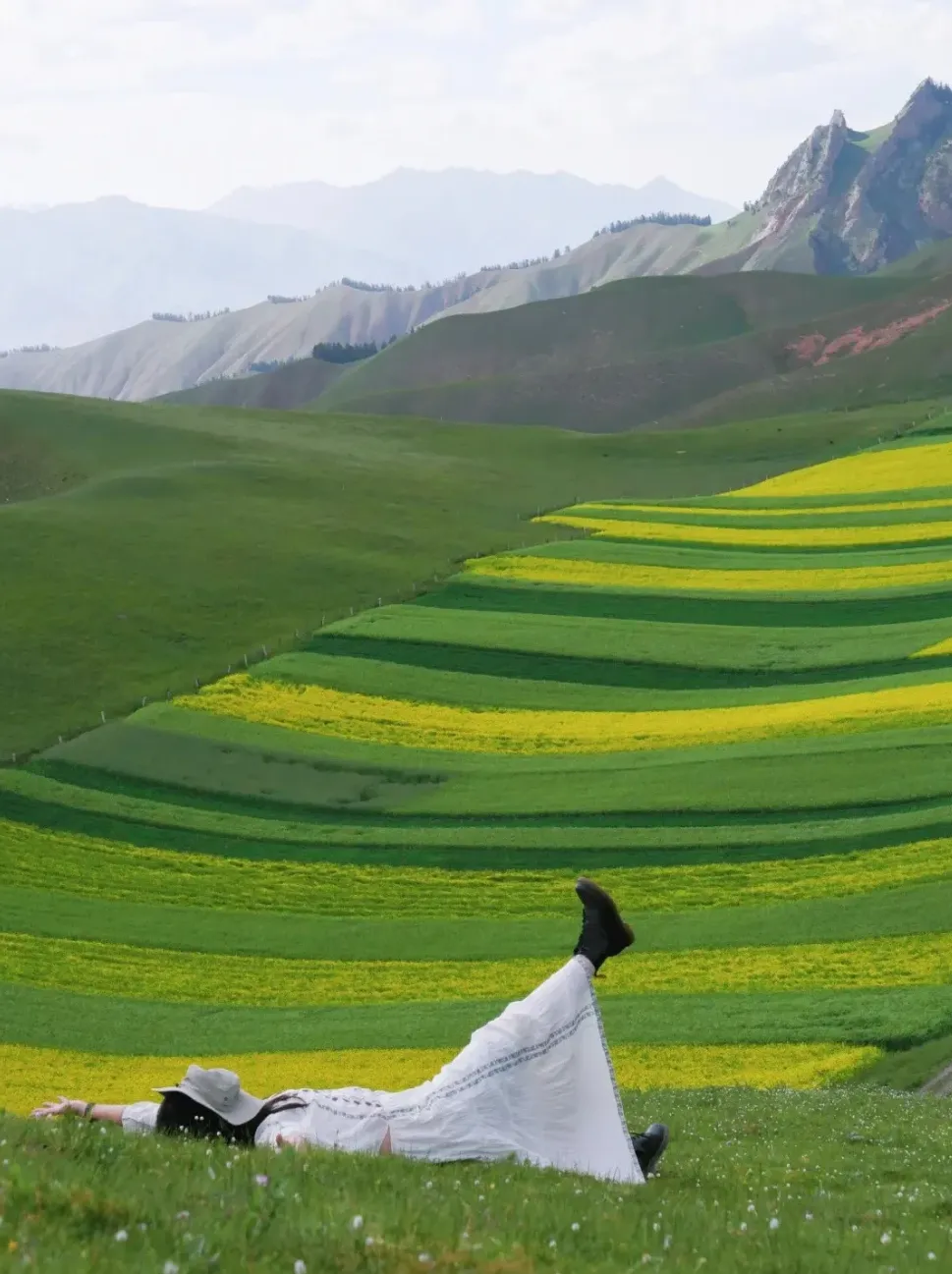 大西北最佳旅行时间是每年的6-9月,这个时候,雪山融化,盐湖湖水更清澈,草原绿了,成片成片的油菜花也开了。