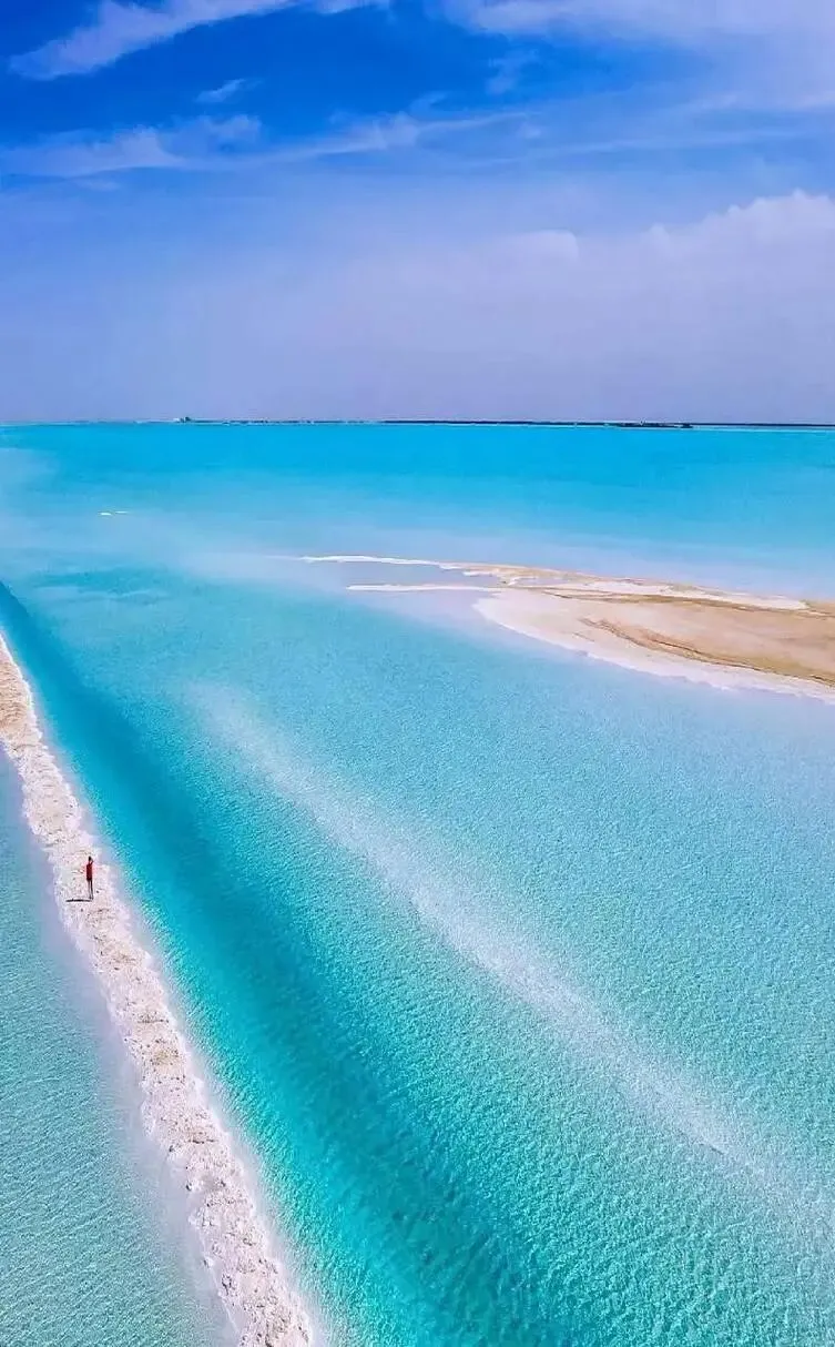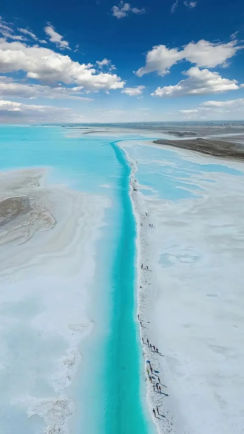 洁白的盐湖映衬着蓝天白云