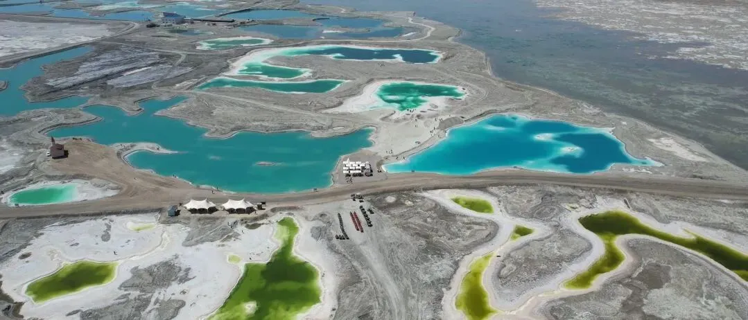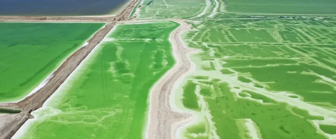 湖里的矿物质在阳光的折射下