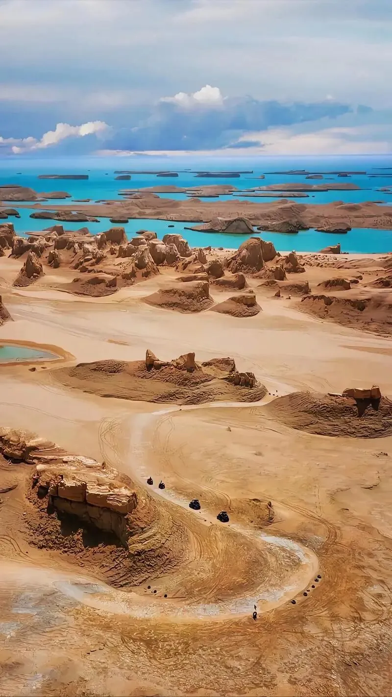 粗粝的雅丹和温柔的蓝绿色湖水相互衬托