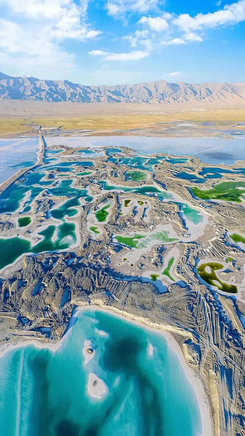 这片湖区有着形态各异的盐湖