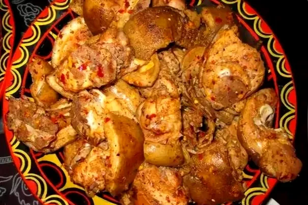 必吃:张记坨坨肉”,大块猪肉清水煮熟,蘸椒盐或辣椒面,肉质鲜嫩,是彝族待客必备。