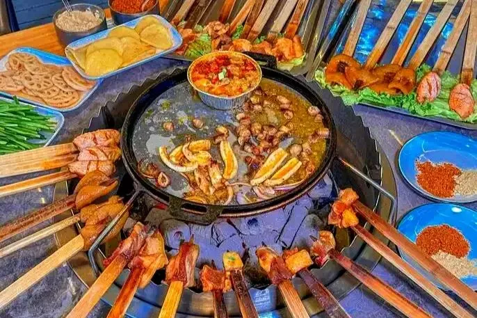 2.西昌火盆烧烤:炭火烤小肠、牛筋,市井烟火气足。