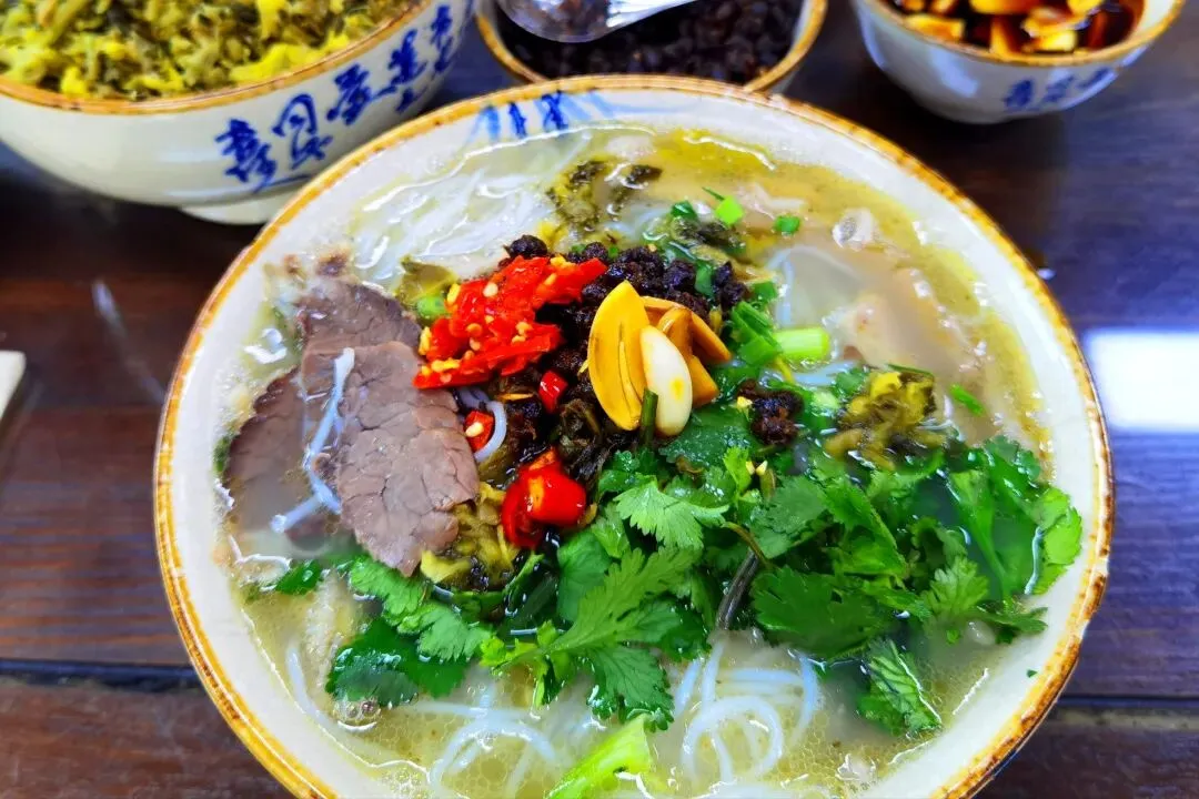6.西昌牛羊杂粉:牛杂羊杂配薄荷叶,汤底鲜美,早餐佳选。