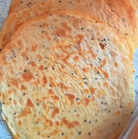 第二美食:阳泉压饼“黄金饼,薄如纸,入口碎,嘎嘣脆”。这玩意儿是阳泉一绝,用玉米面、苦荞面反复翻压,撒上葱花和芝麻,烤得焦香。我在桃河公园门口买的,10块钱一大包,边走边吃,根本停不下来。推荐: 路边摊和超市都有,认准“漾泉”牌。