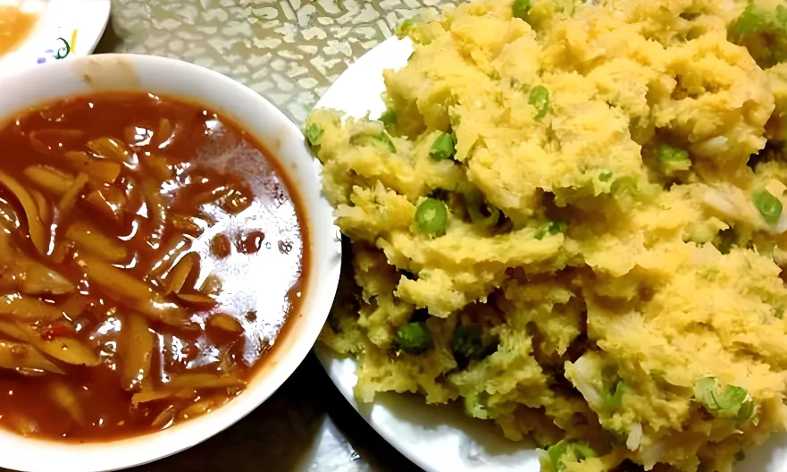 第四美食:阳泉糊嘟这可不是糊涂,是玉米面的艺术。把玉米面和土豆、豆角在大铁锅里焖烙,底部结出金黄的锅巴,铲一块对折,咬下去咔吱作响。在矿务局小吃街吃的,配上小菜,米其林都给不了这种家的味道。推荐: 路边小饭馆,人均20元。