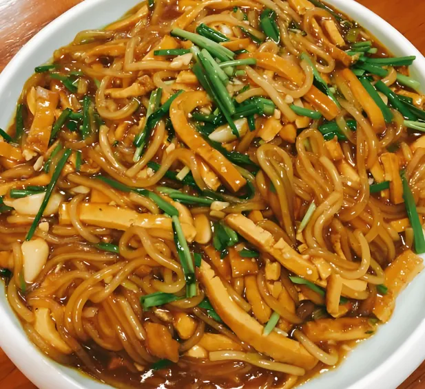 第五美食:粉条豆腐丝看似凉菜,吃着烫嘴!油炸豆腐丝外脆里嫩,粉条爽滑,勾上芡汁,口感丰富。在平定县的夜市上吃的,几乎每桌必点,配上二米饭,咸香下饭。推荐: 夜市大排档,人均30元。