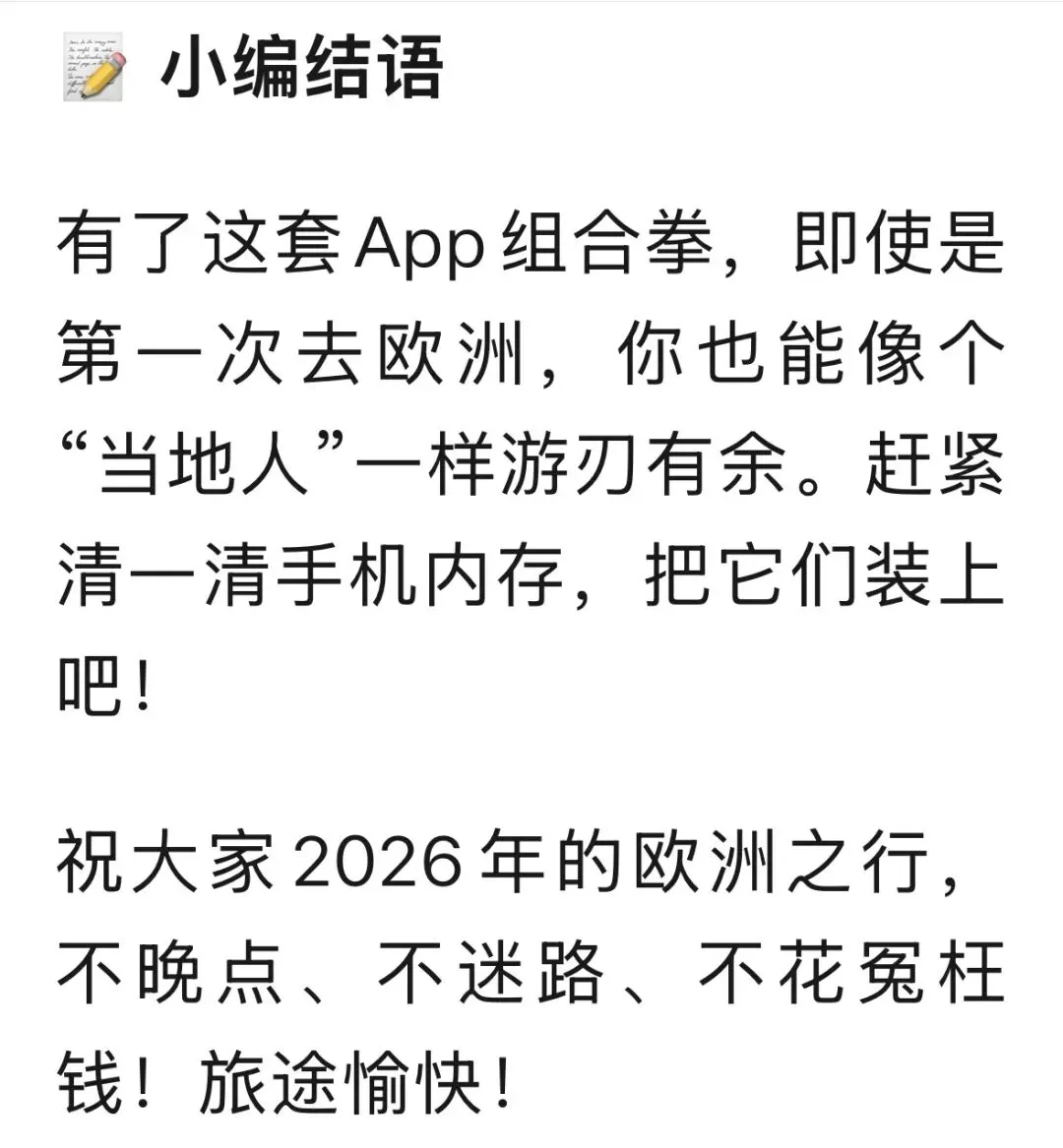 【旅游攻略】关于App!2026欧洲保姆级攻略!收藏!自由行不迷路、避免冤枉钱!