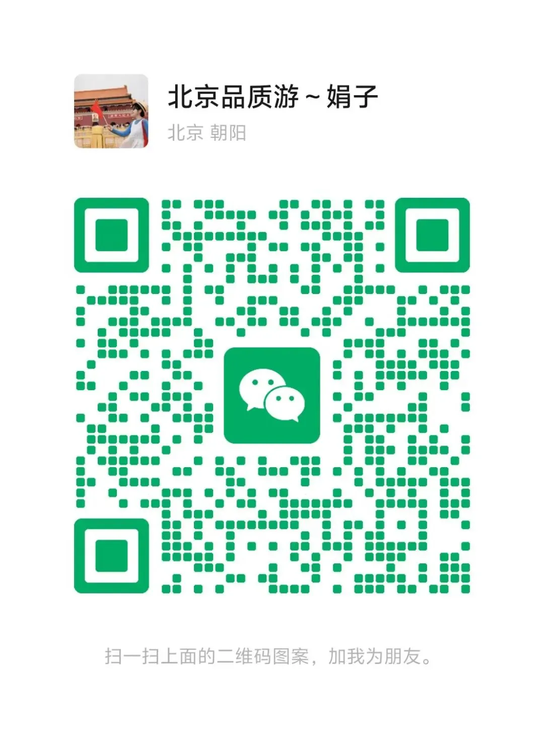 加好友时记得说“朋友介绍”,现在是北京旅游旺季,门票、酒店一定要提前安排。娟子现在还在赠送北京各大景区门票,偶尔也会发机票优惠券,有想法的兄弟赶紧咨询,别错过福利。
