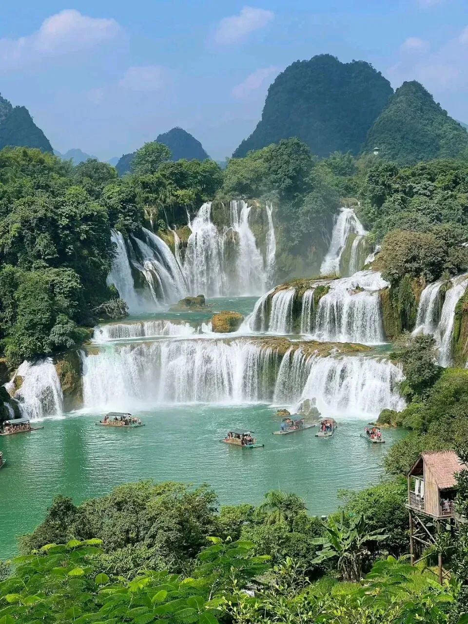 ✅德天跨国瀑布:崇左的王牌景点,也是本次旅途的震撼开场。亚洲第一、世界第四的跨国瀑布,横跨中越两国——中国的德天瀑布气势磅礴如银河倾泻,越南的板约瀑布则秀丽婉约如轻纱曼舞。常规开放时间08:00-17:30,旺季延长至18:00;成人门票含观光车115元/人,建议游玩3-4小时。